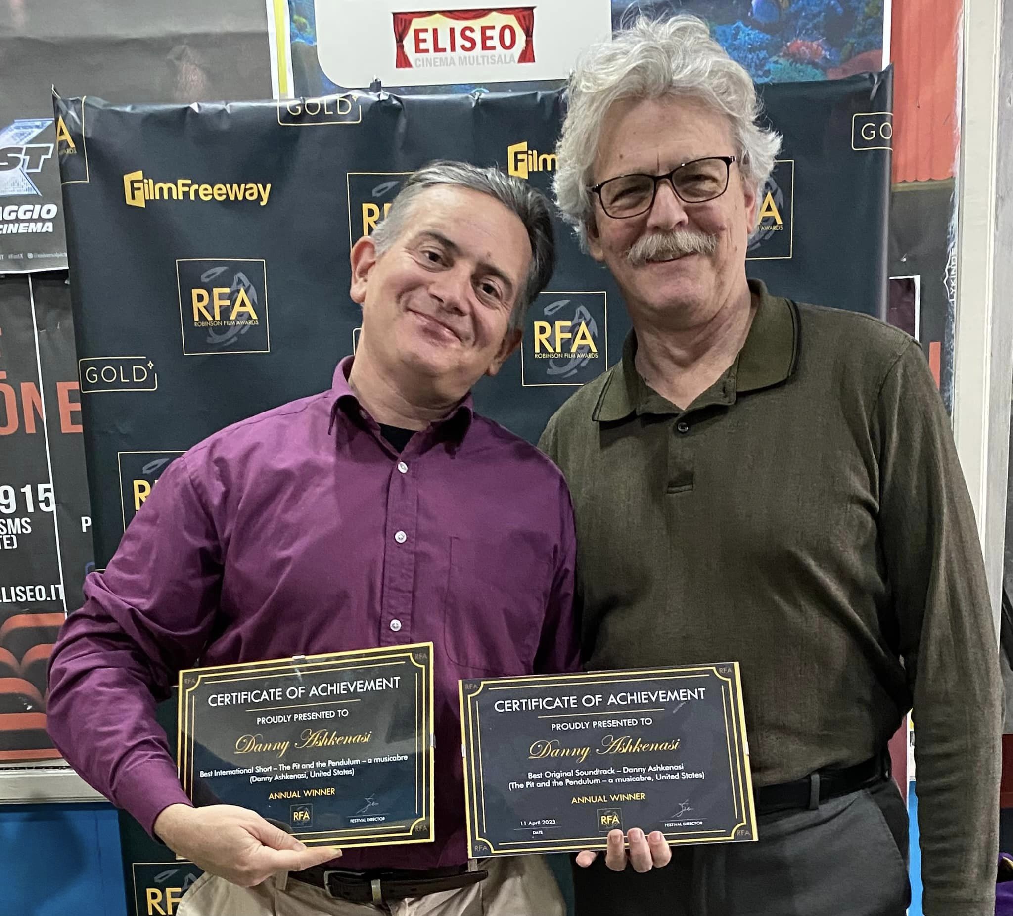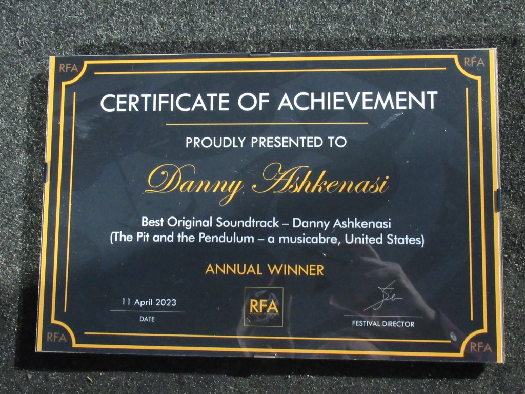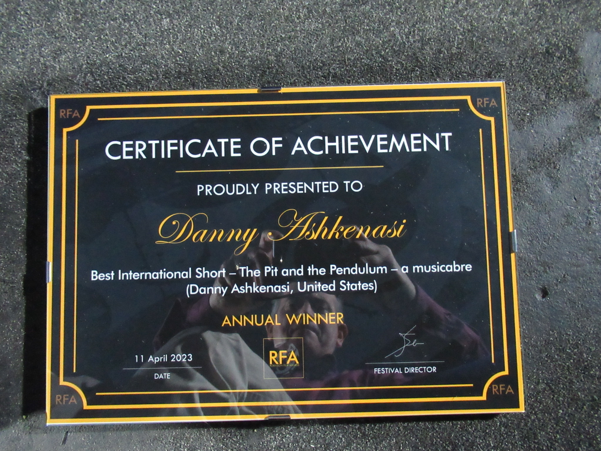 Tuesday, April 11 the Robinson Film Awards presented the best of their bimonthly awards season (“The Pit and the Pendulum – a musicabre“, my musical Edgar Allan Poe adaptation had won Best international Short and Best Experimental Short and Best Soundtrack during their December awards). Short films and feature length films were shown all day, interspersed with live performances.