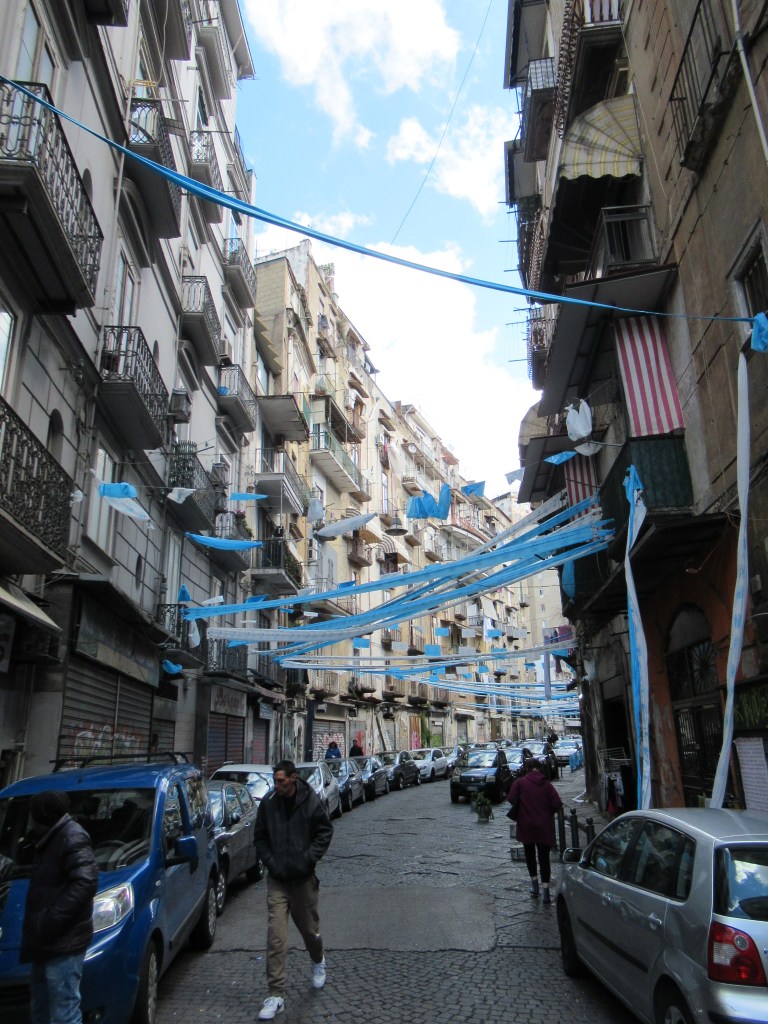 But we soon learned that white and blue are the colors of the Naples soccer team. And they were leading the national league this year, so the city was festooned in celebration.