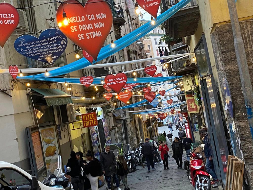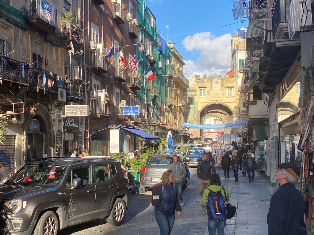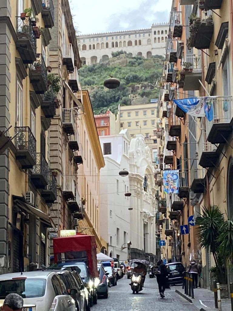 Napoli is at its most Napoli in the Spanish Quarter, where the narrow roads are even closer aligned and intertwined along a steep hill, and where the mopeds have right of way – if not legally, then surely functionally.
