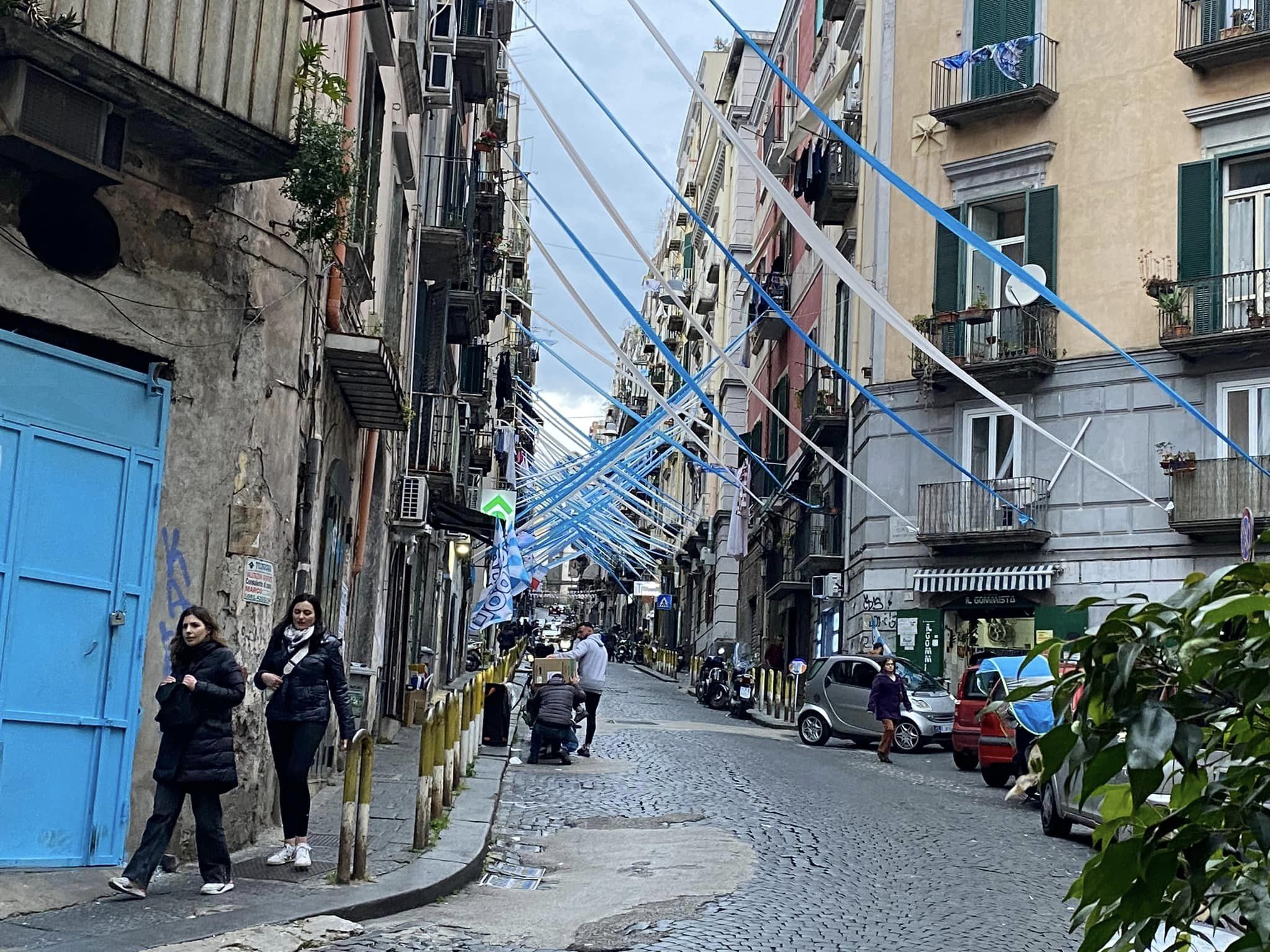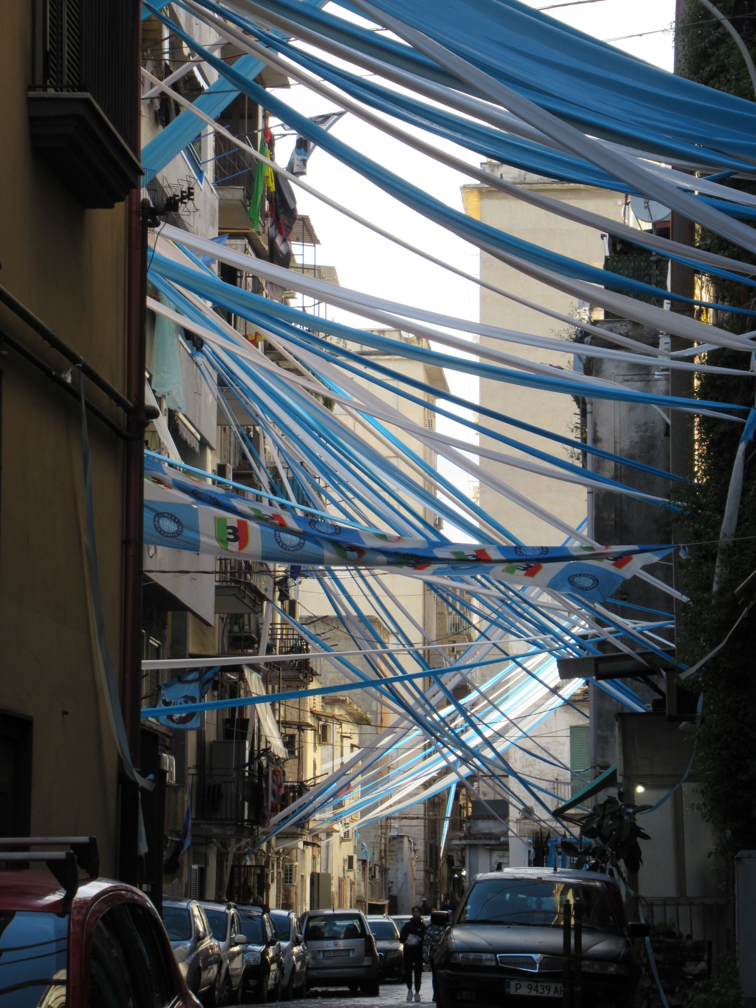 But we soon learned that white and blue are the colors of the Naples soccer team. And they were leading the national league this year, so the city was festooned in celebration.