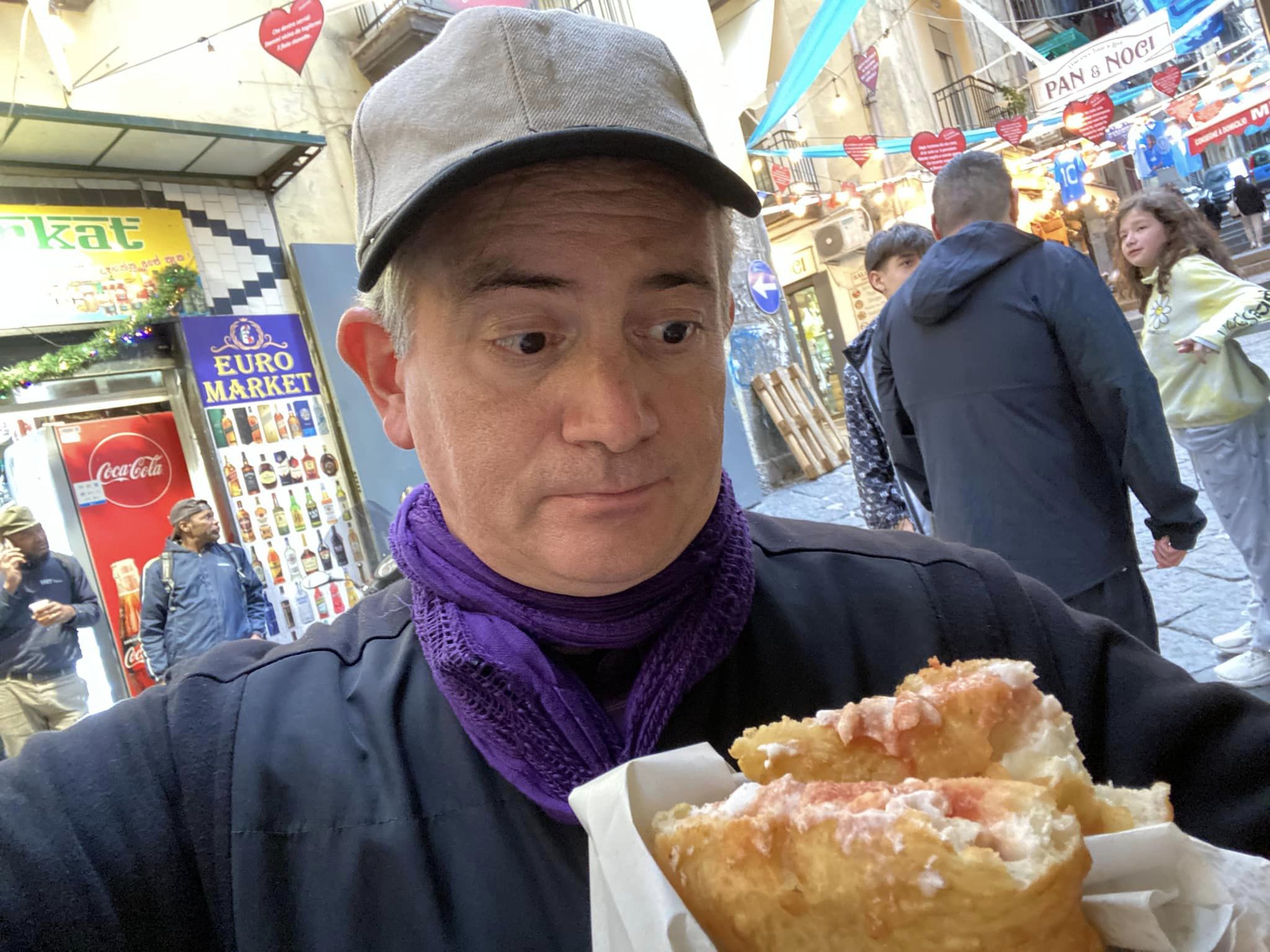 So often in New York I have been disappointed in Italian pastry in general and cannolis specifically. I thought maybe I just don’t like Italian pastry. Basta! I love Italian pastry – those cannoli you see me and Ed eating – found in a little out of the way bakery – were out of this world good! I just don’t love Italian pastry as made in New York City. But made in Napoli… magnificent every time!