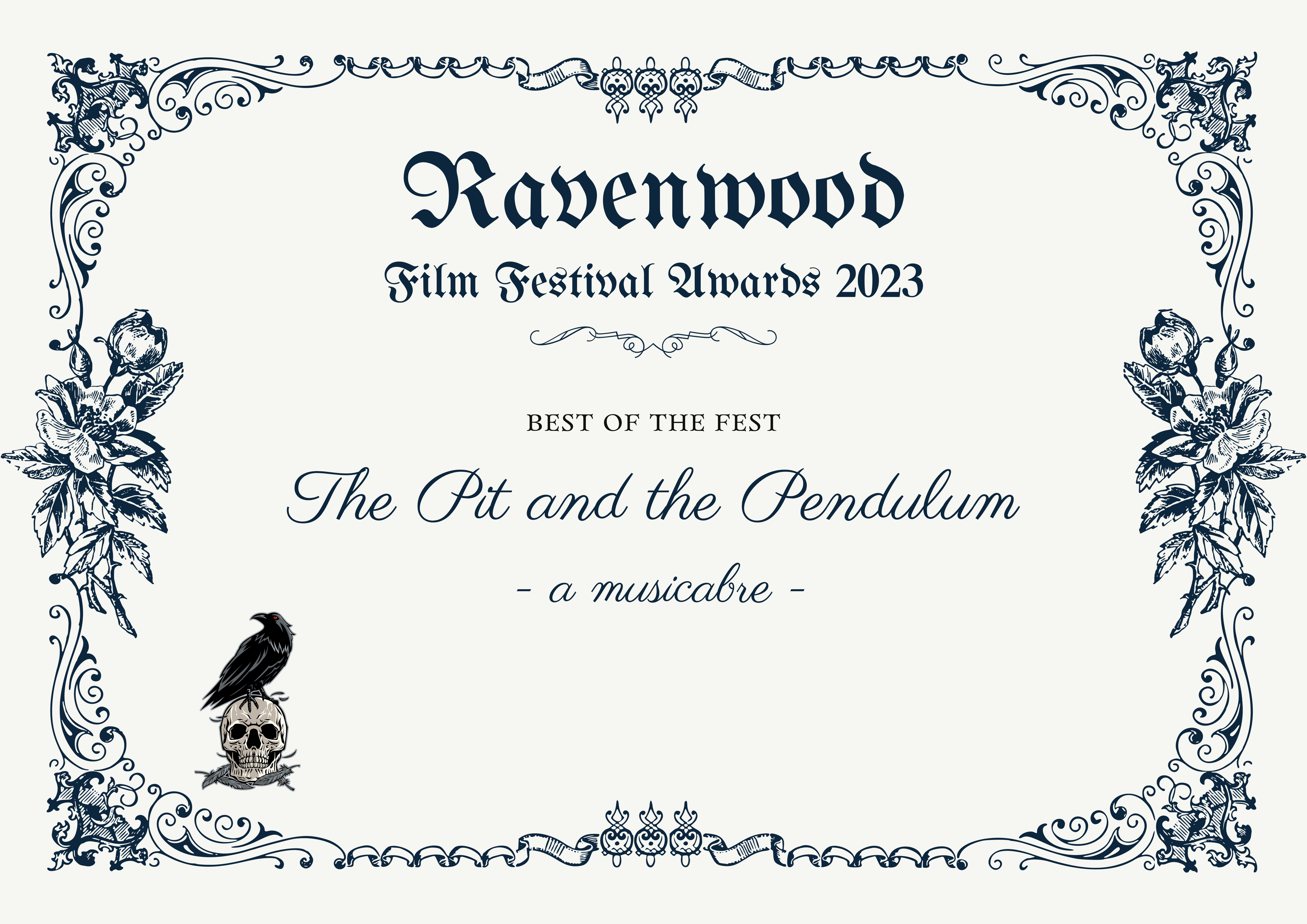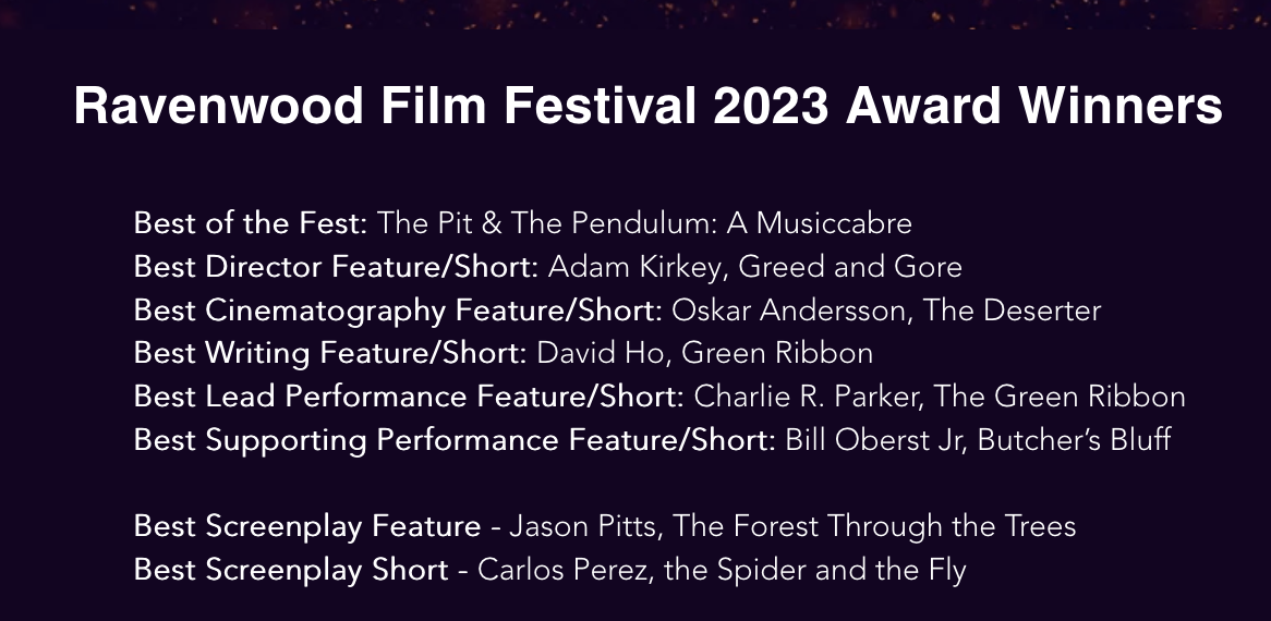 The Ravenwood Film Festival has named “The Pit and the Pendulum – a musicabre” Best of the Fest (of all films, short and feature length) at the 2023 edition of their festival.