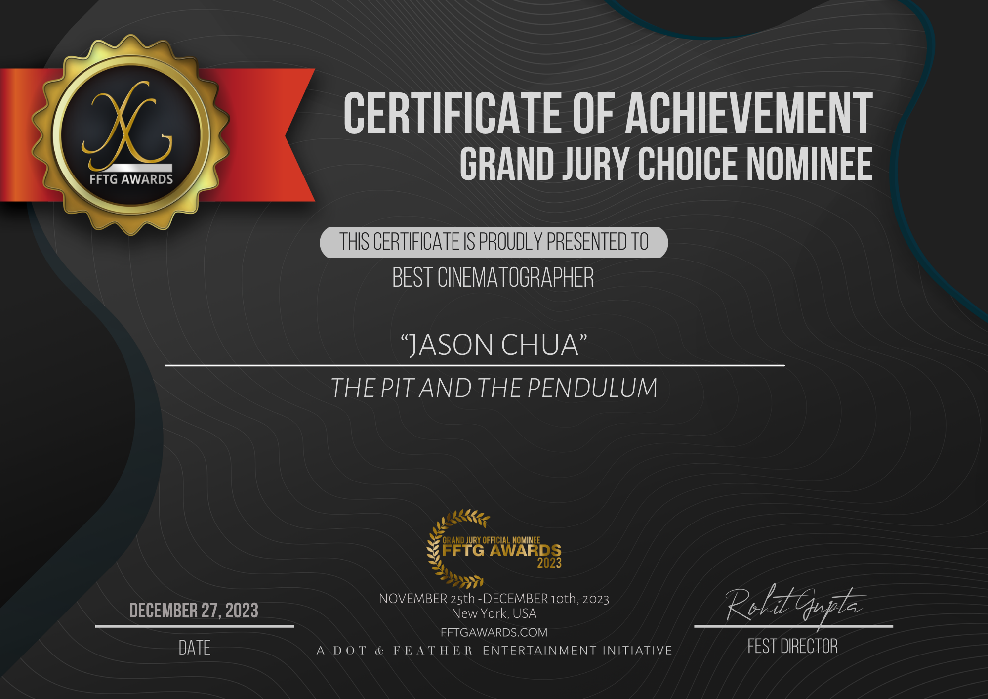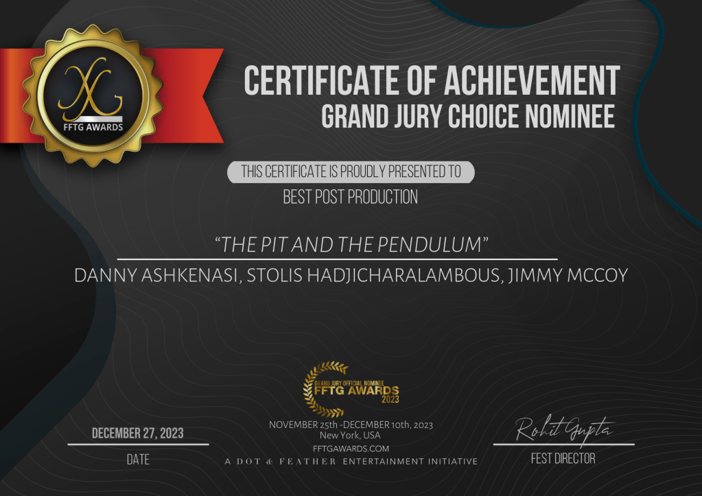 “The Pit and the Pendulum – a musicabre” was nominated for Best Background Music, Best Post Production, Best Cinematography, Best Actor, Best Supporting Actor and Best Film – Musical.