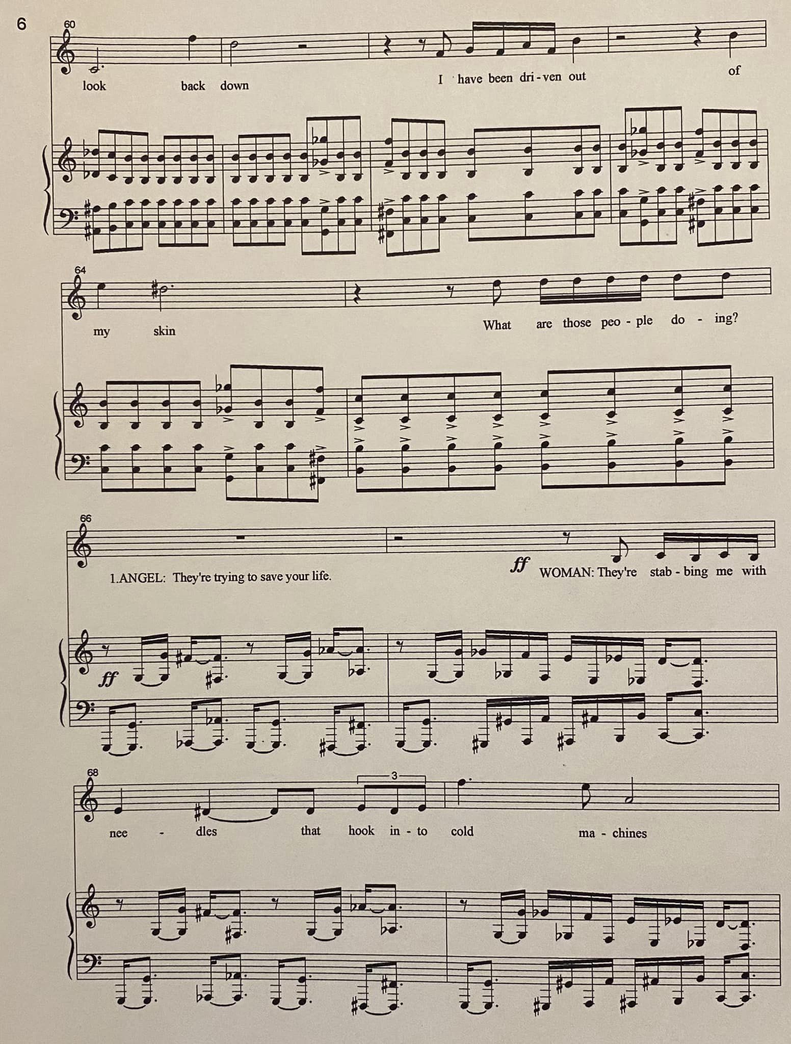 We begin with Sections I and II. Two Angels, one seasoned, one new at the job, await their next assignment, an opera singer involved in a car crash…