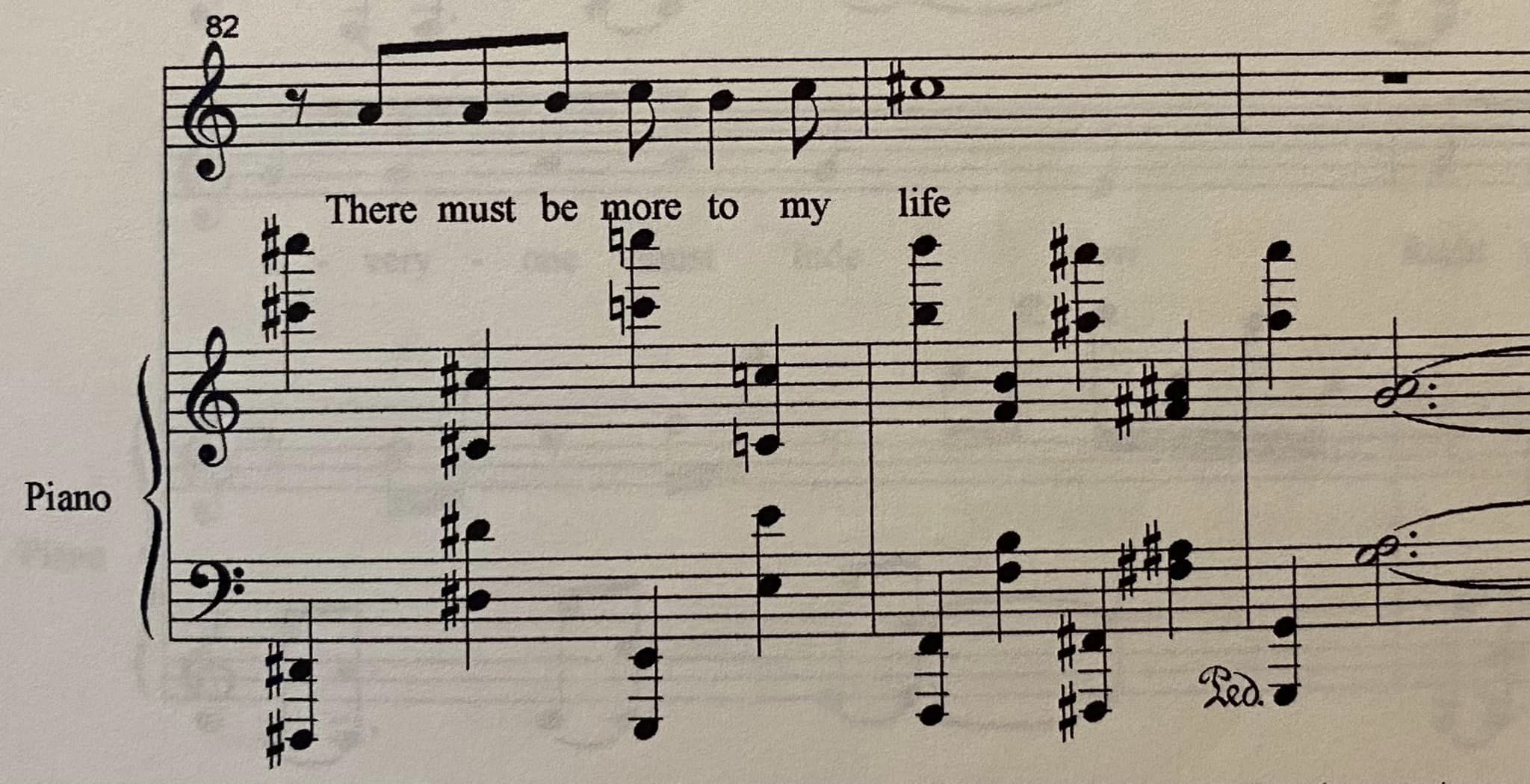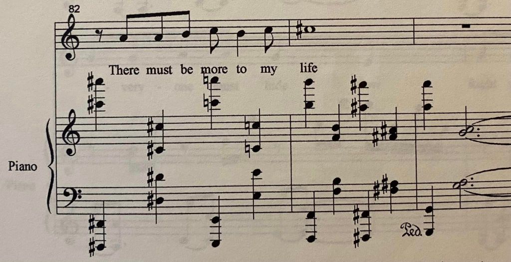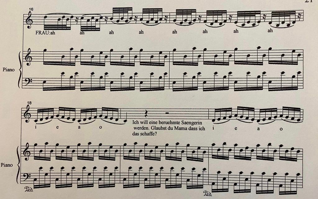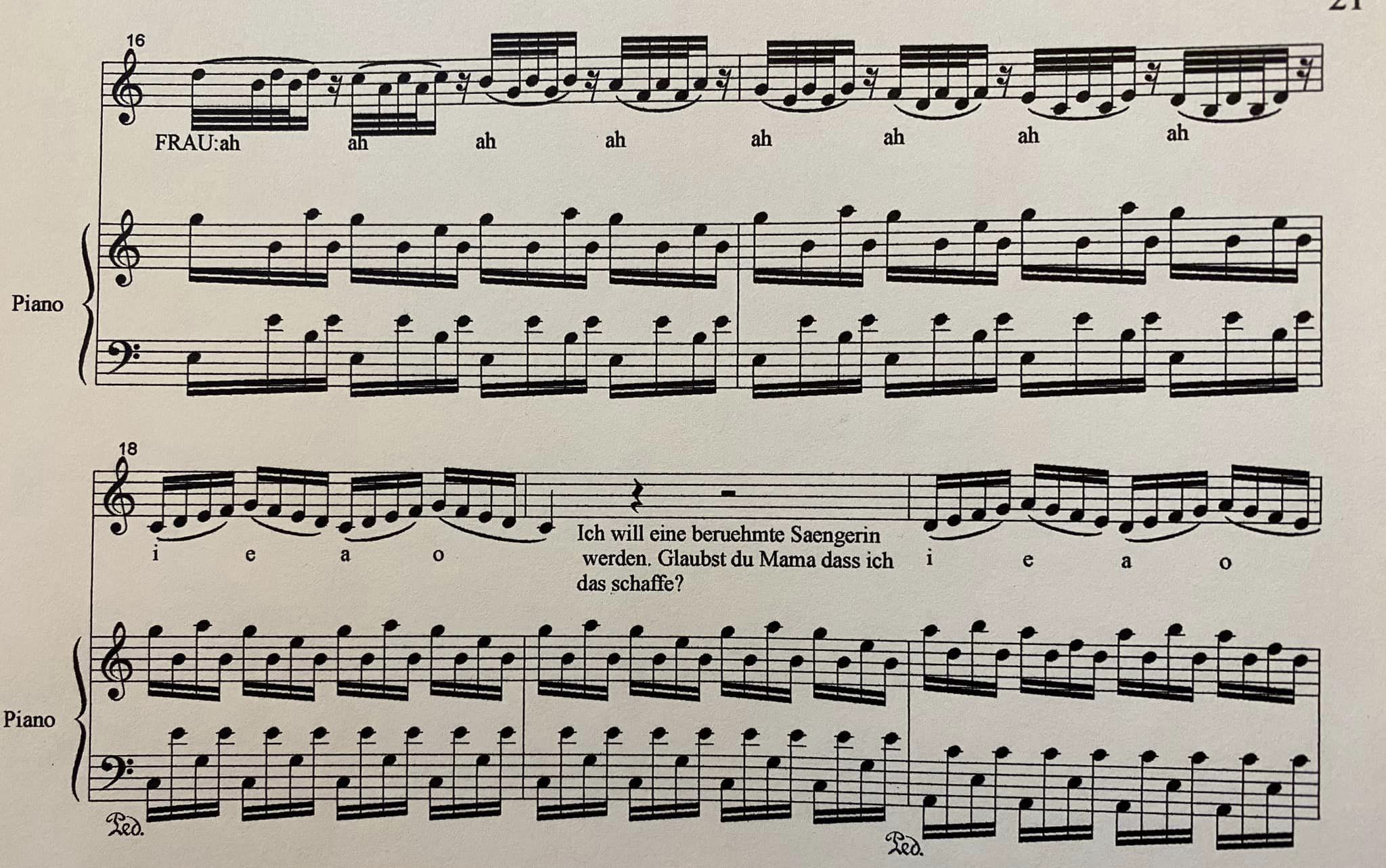Above and below, examples of my mother’s vocal exercises threaded into the score.