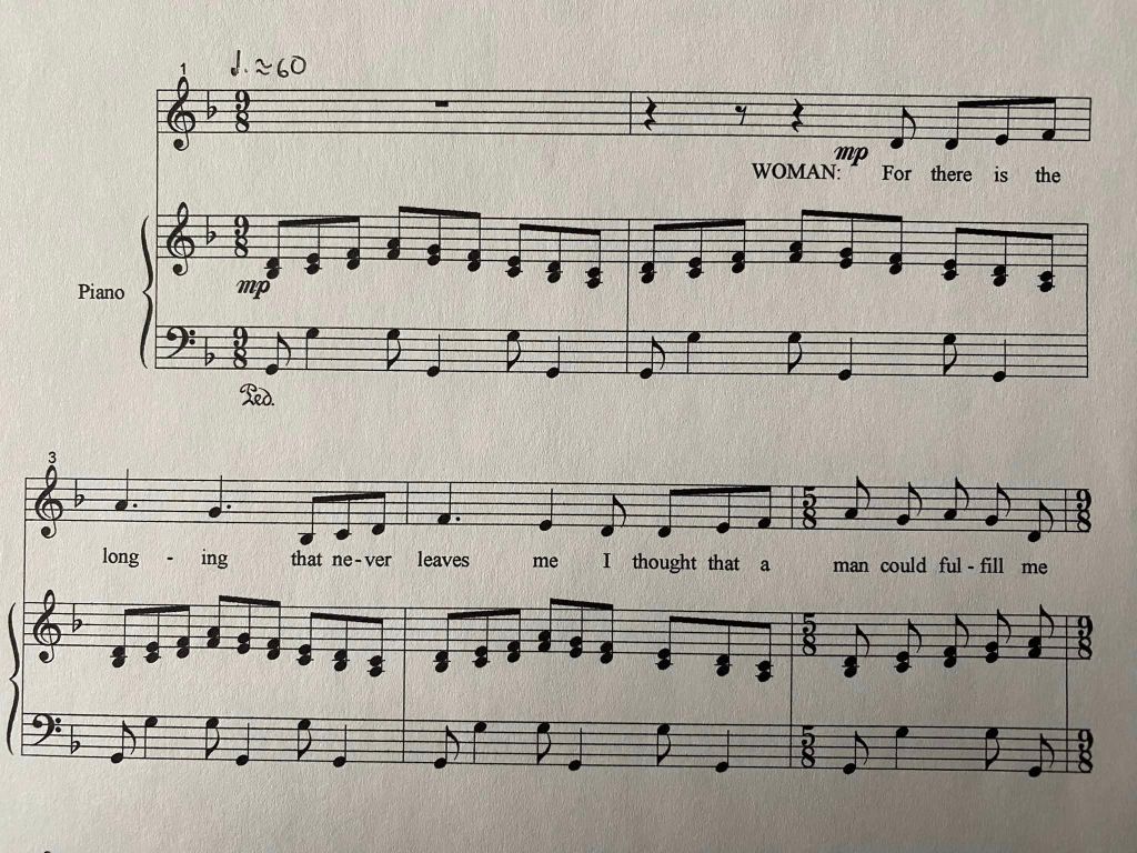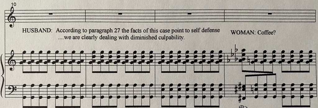 At the close of the previous section of Beyond (Jenseits), the “little night opera” I composed for my mother, the lullaby for her Son transitions to an introduction to the Woman’s Husband. (Catch up on all previous installments on the opera’s homepage.)
