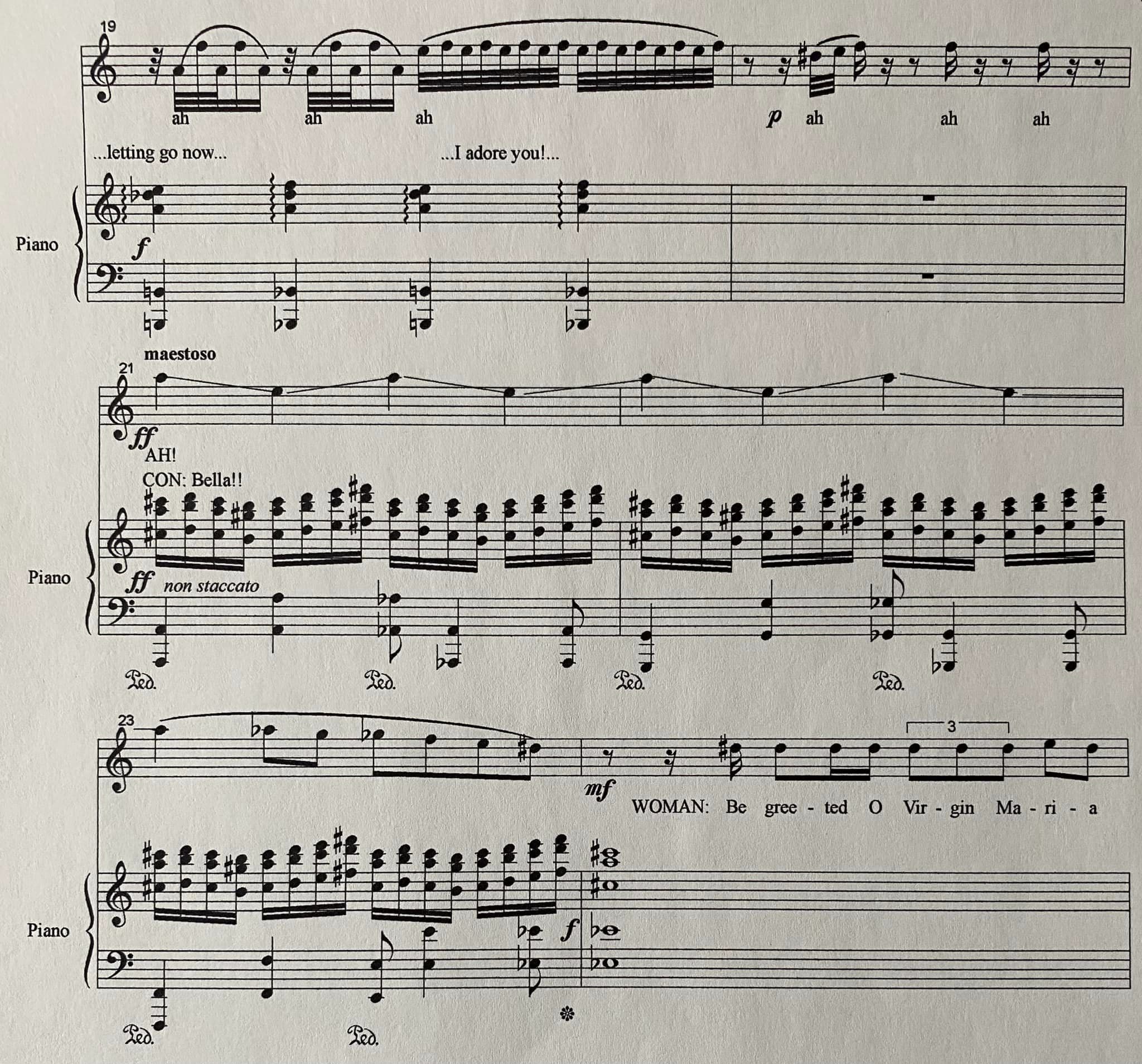 At the close of the previous section of Beyond (Jenseits), the “little night opera” I composed for my mother, the lullaby for her Son transitions to an introduction to the Woman’s Husband. (Catch up on all previous installments on the opera’s homepage.)