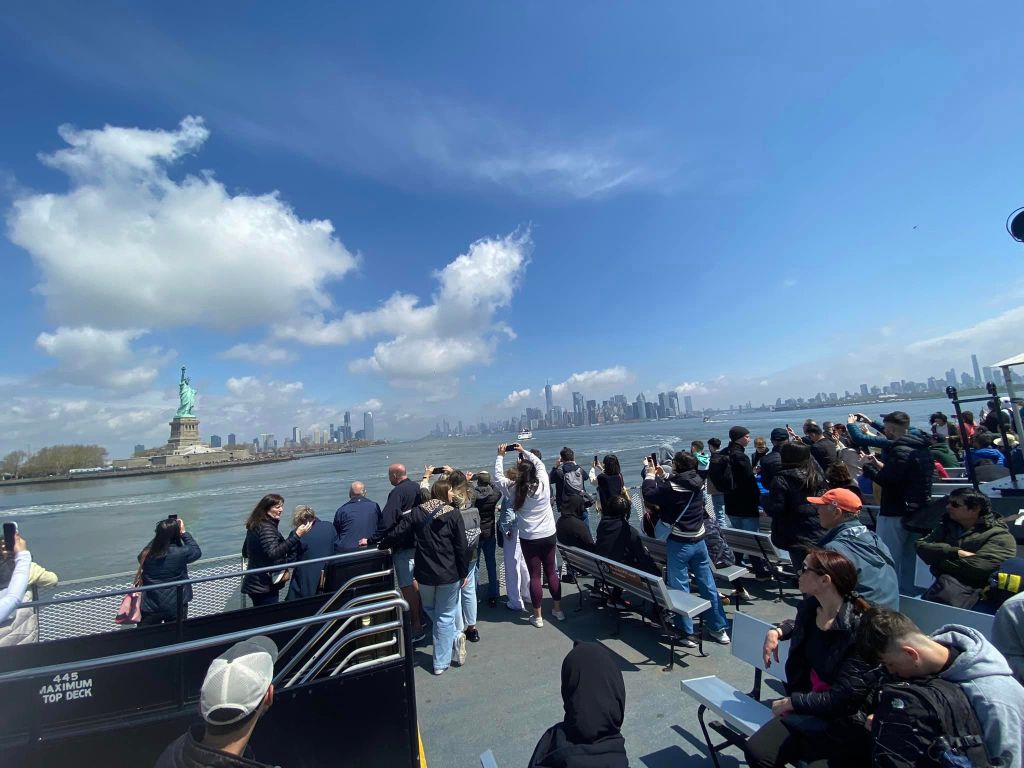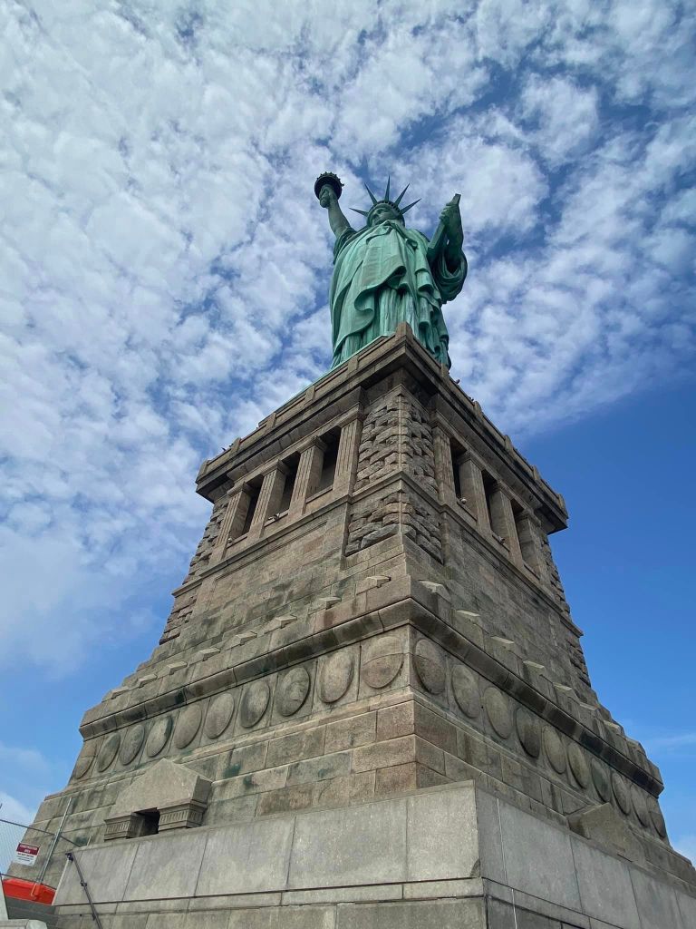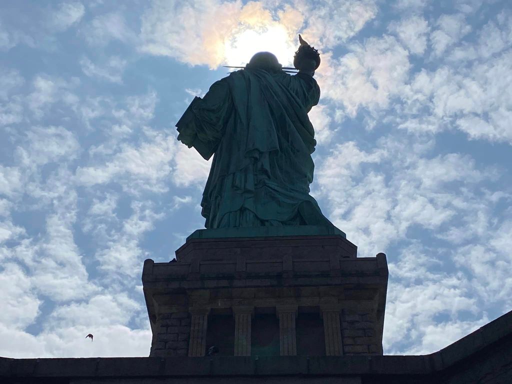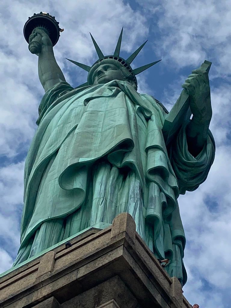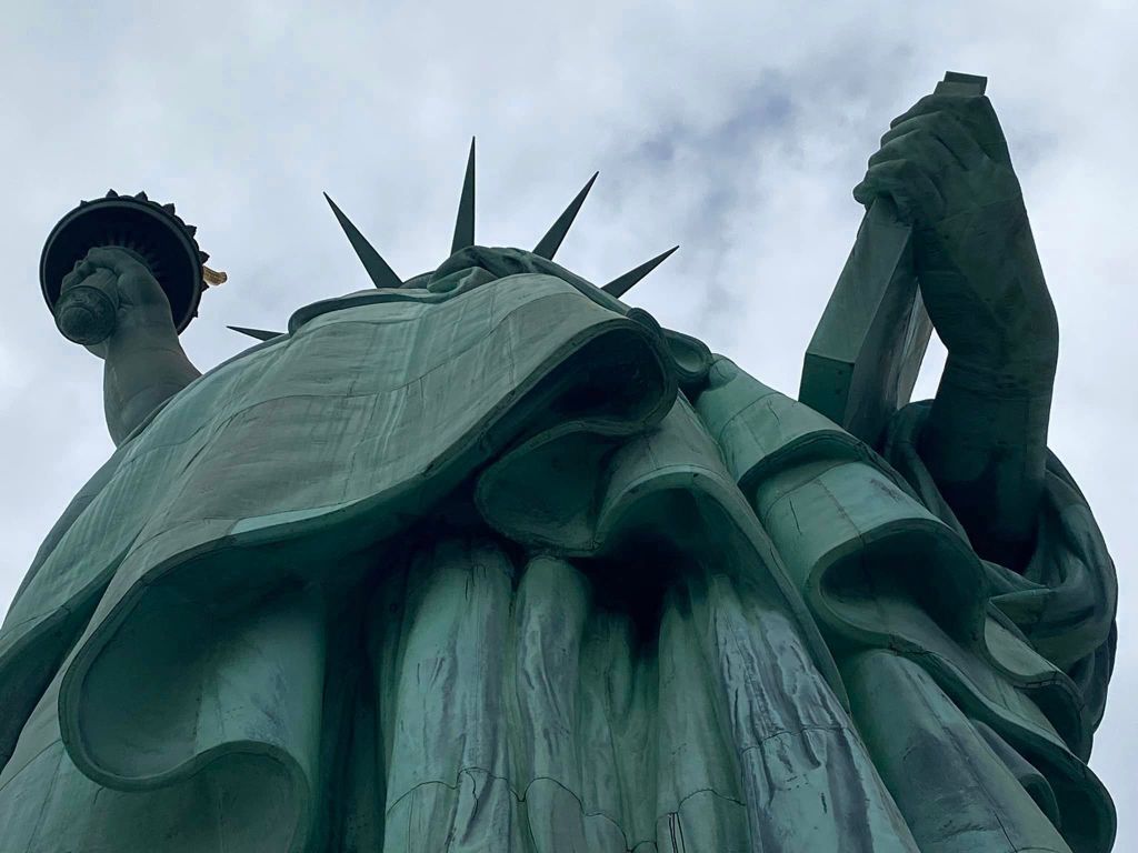 The morning started grey and rainy but turned sunny and blue around the time we reached the viewing gallery in Lady Liberty’s crown, allowing for some contrasting views in approach and retreat.