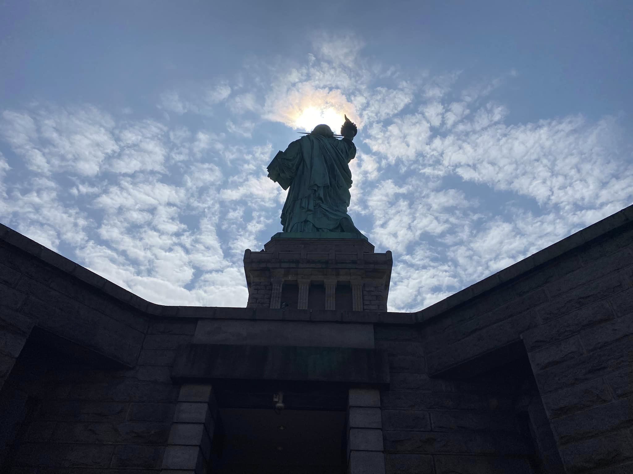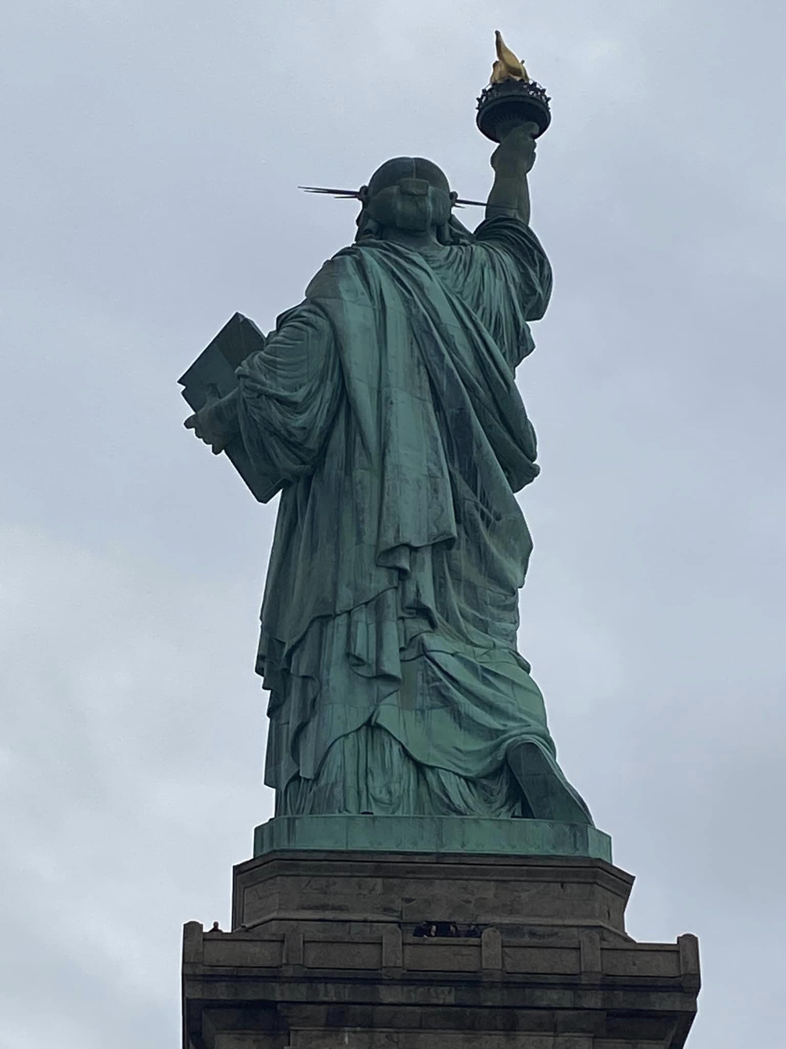 The morning started grey and rainy but turned sunny and blue around the time we reached the viewing gallery in Lady Liberty’s crown, allowing for some contrasting views in approach and retreat.