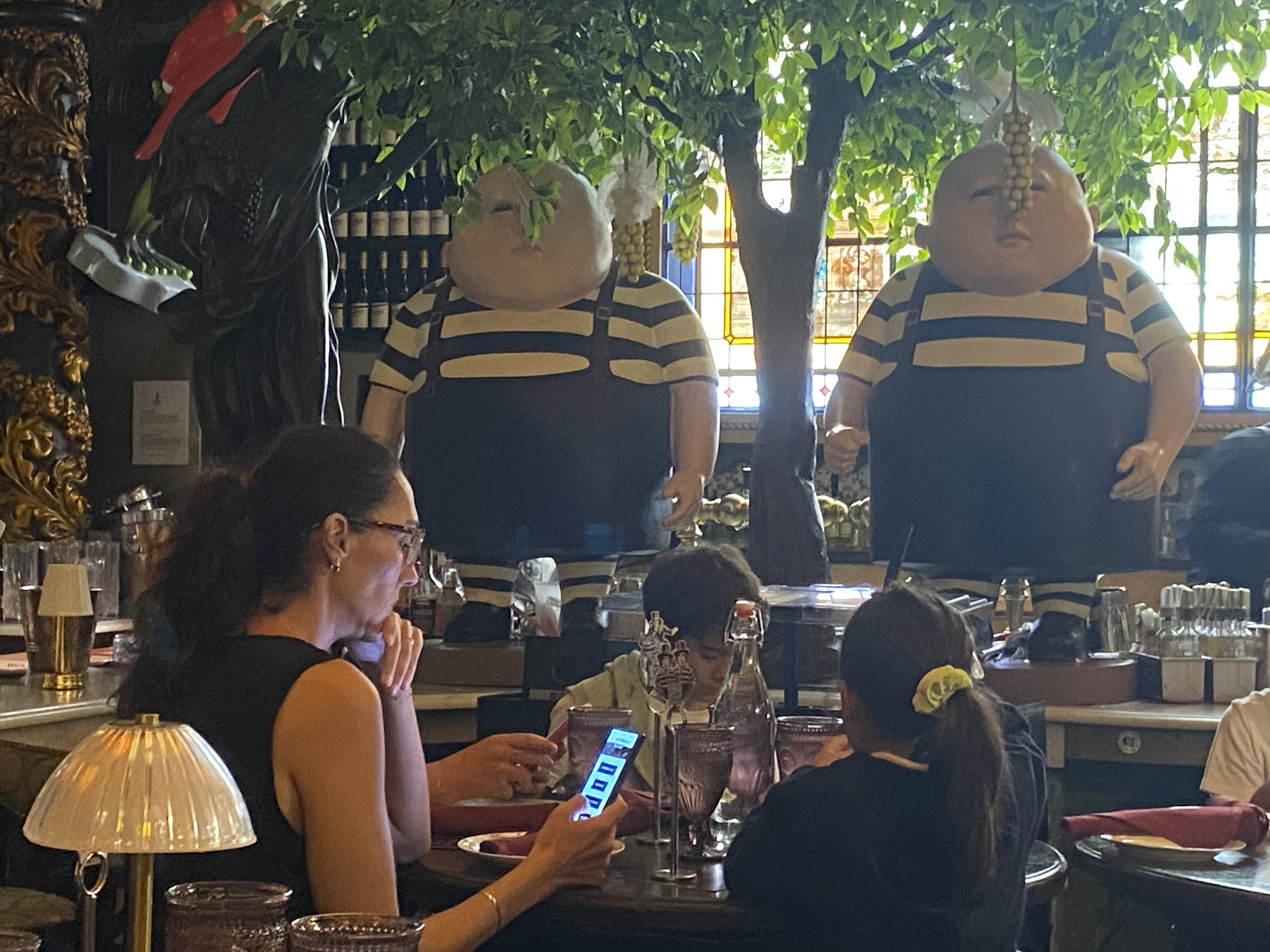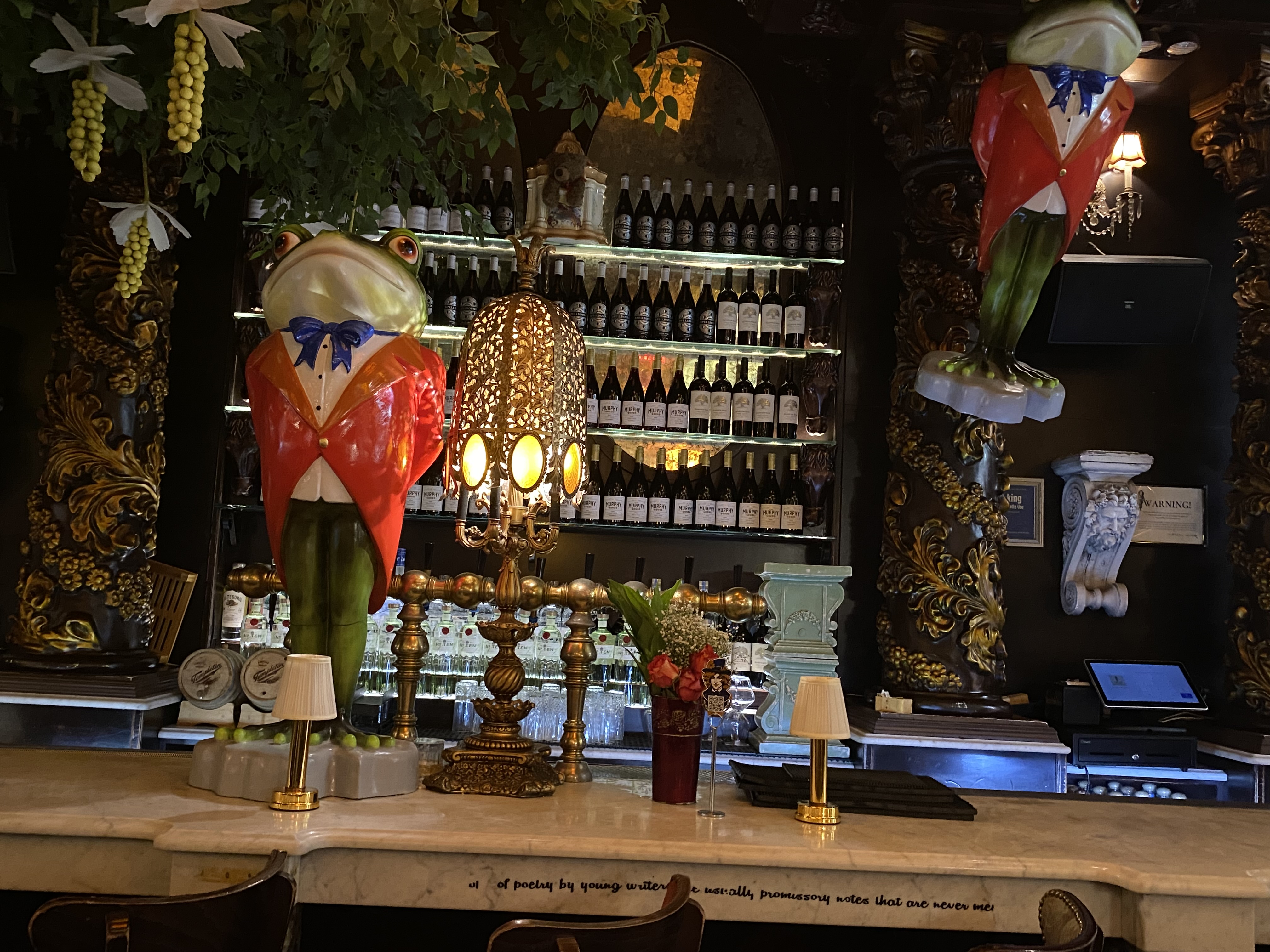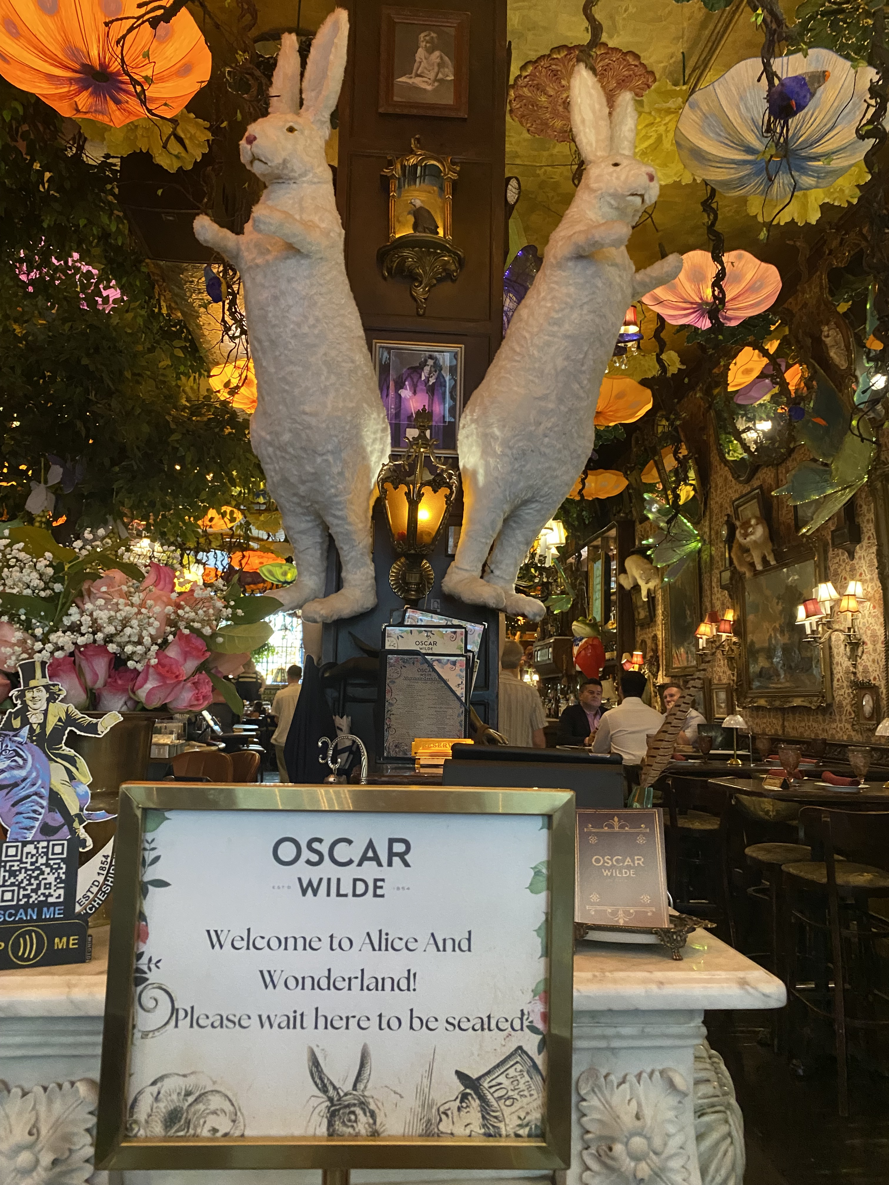 The name of the restaurant may be Oscar Wilde, but the decor is largely influenced by Lewis Carroll. (Having written an Alice in Wonderland inspired musical, I had extra incentive to explore this place.)