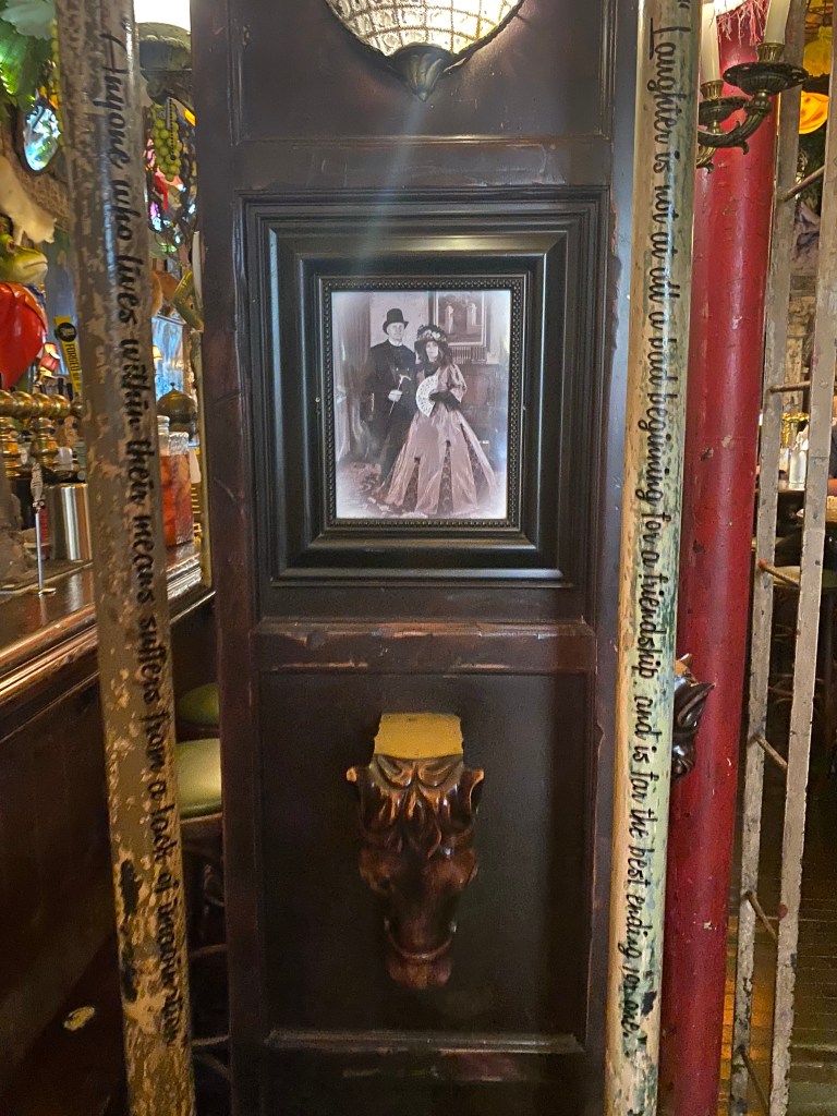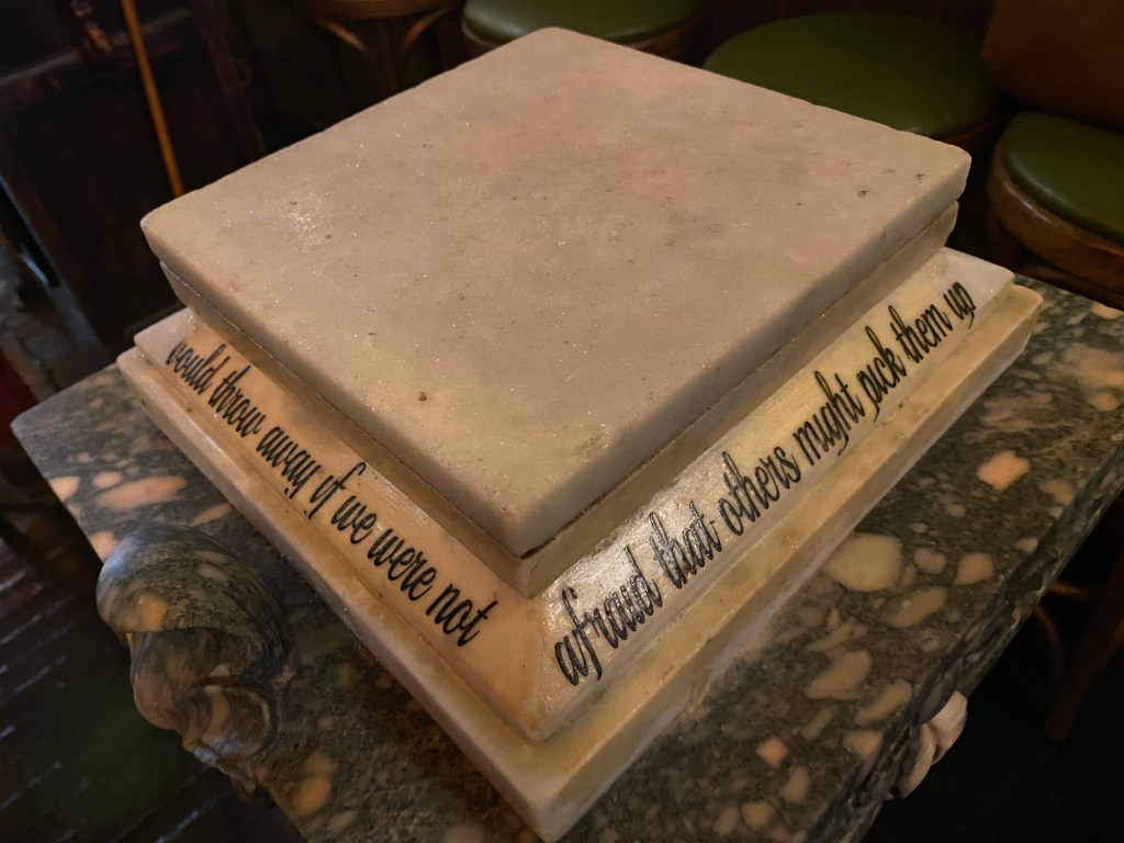 Quotes from Oscar Wilde are scattered throughout the premises. The one below the bar counter in the picture above reads: “Books of poetry by young writers are usually promissory notes that are never met.”