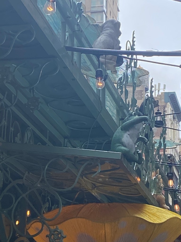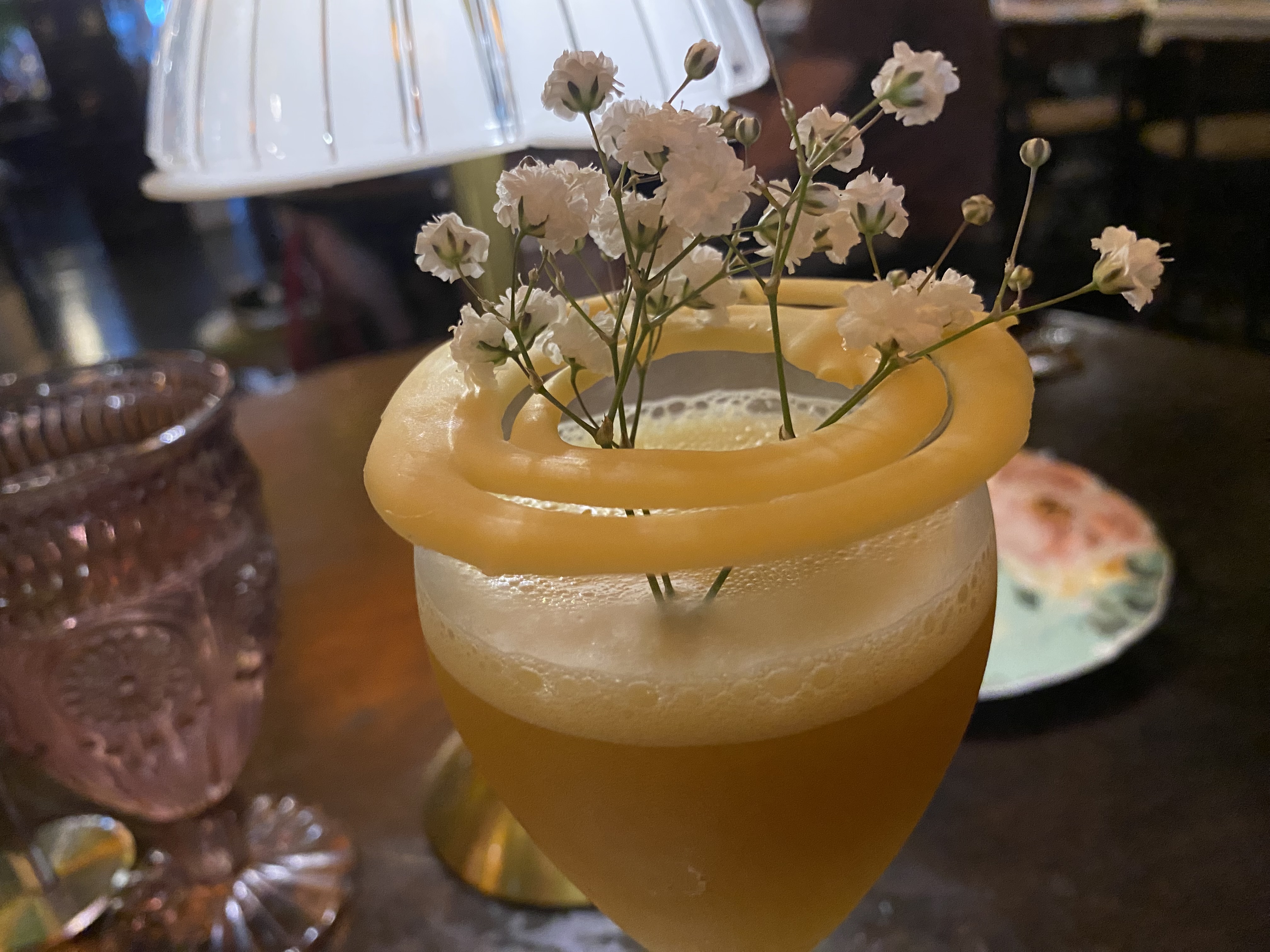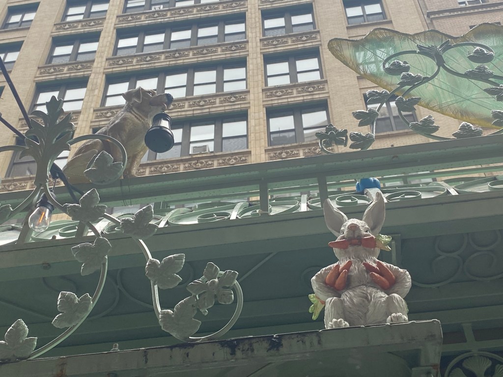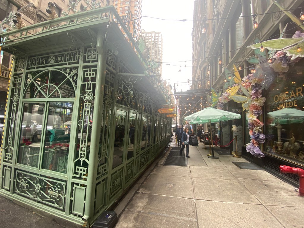 Even the Open Restaurant sidewalk and/or roadway seating area (that’s the official NYC government term for the curbside restaurant shacks that sprung up during the pandemic and are now permanent fixtures of NYC street life) for Oscar Wilde is wondrously designed and decorated.