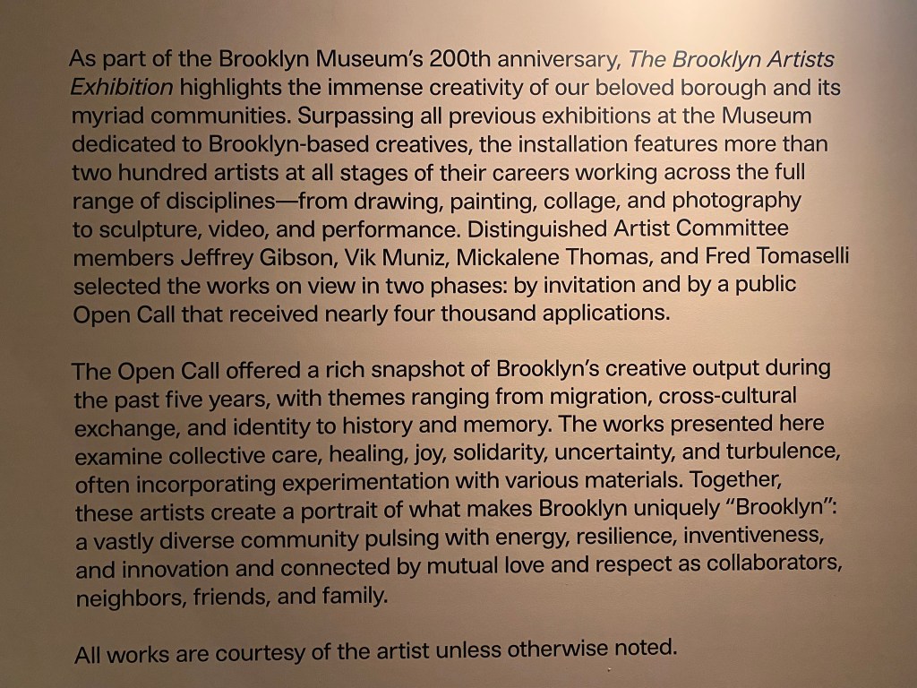 The exhibit of contemporary Brooklyn artists currently showing at the Brooklyn Museum is resplendent with imagination and diversity, technically and aesthetically. Here is a sample of the highlights.