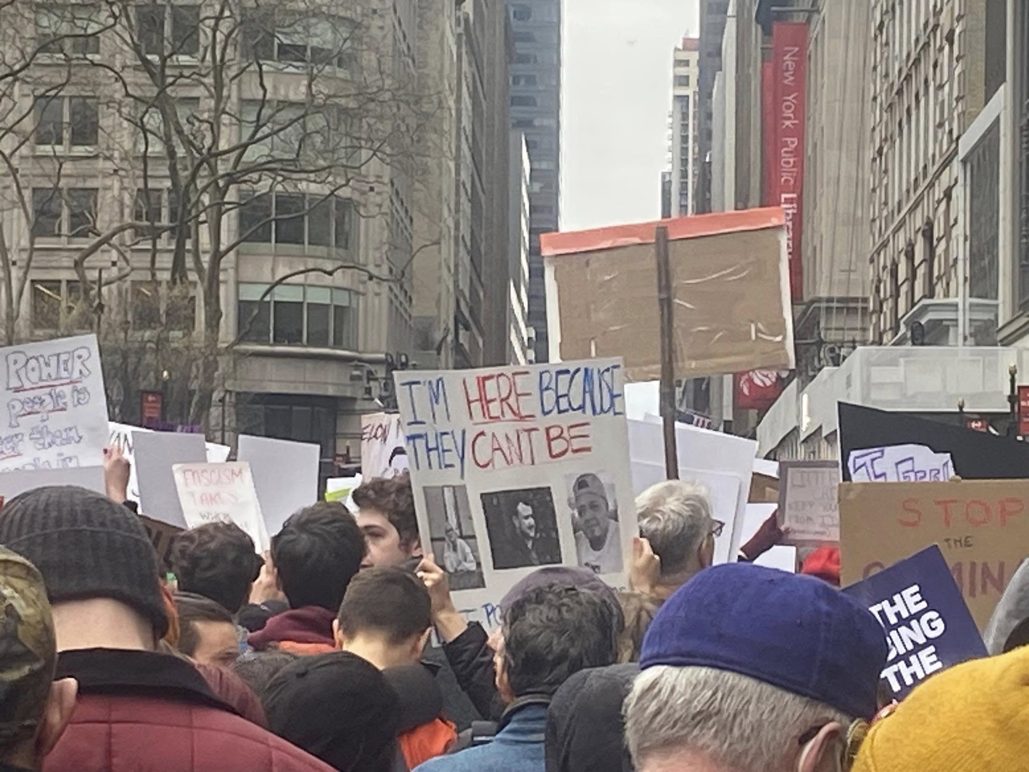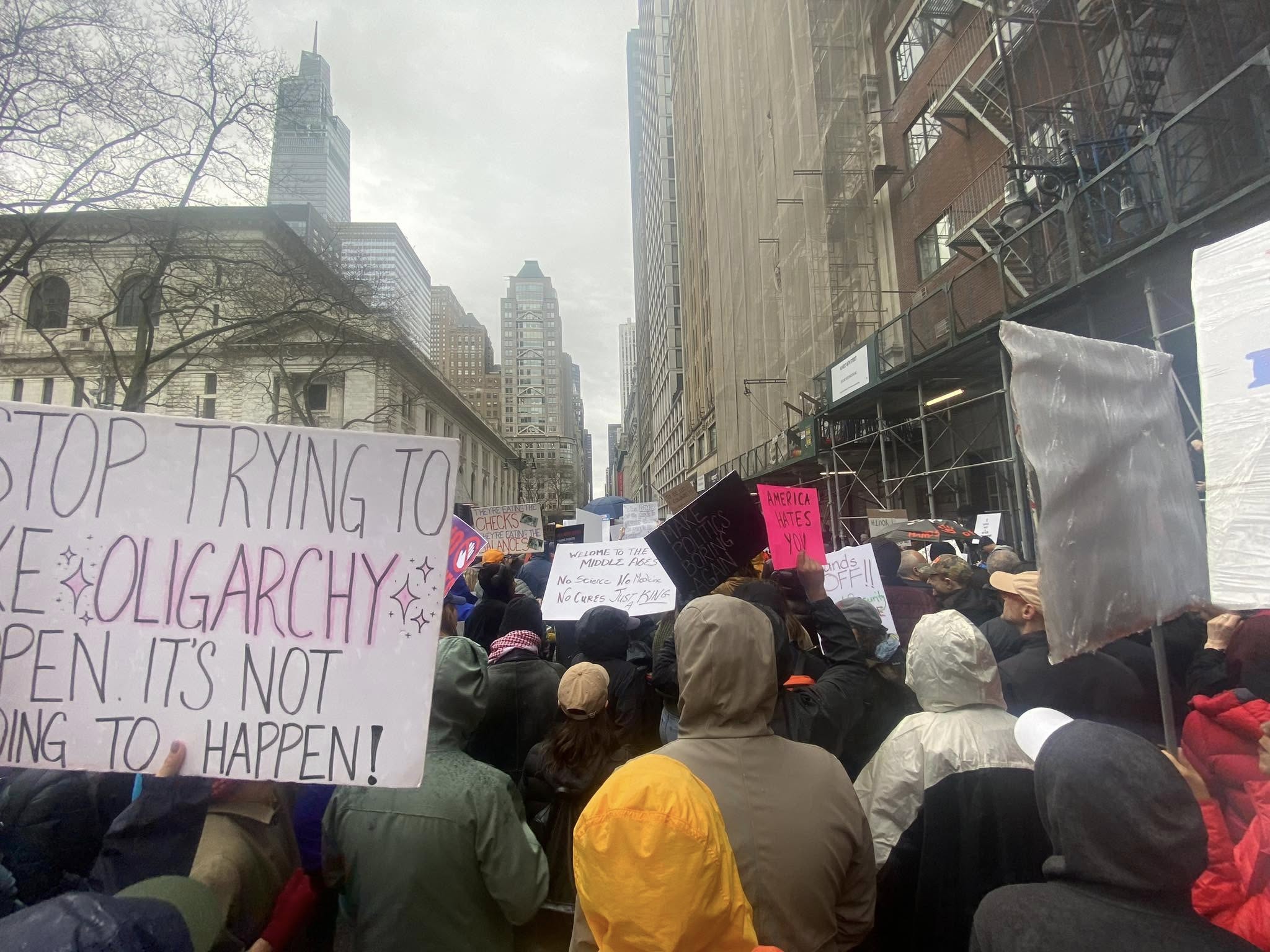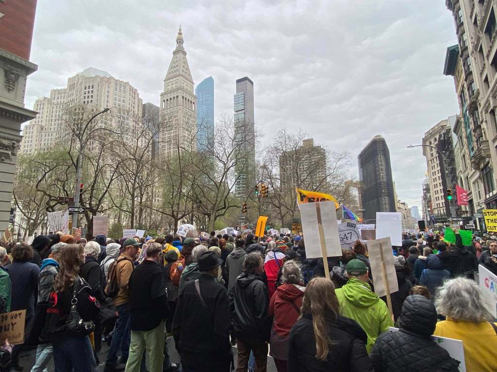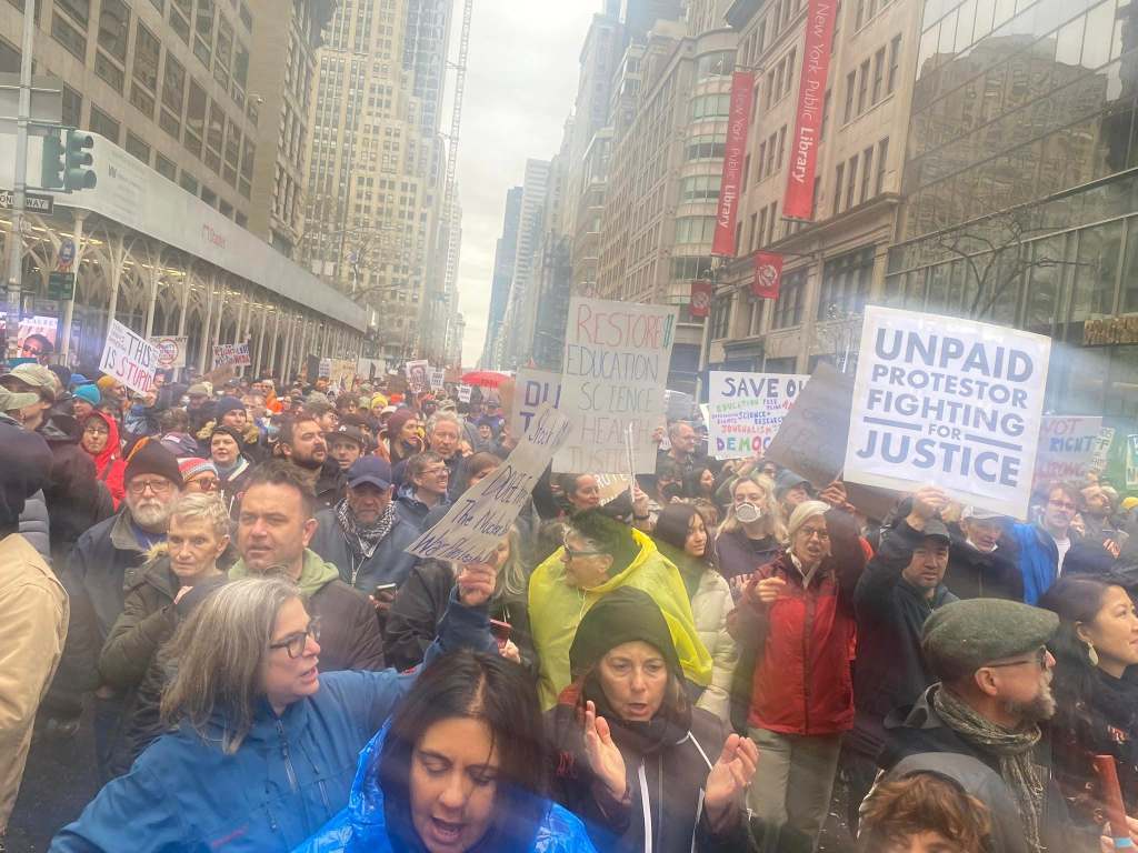 The NYC protest gathered at Bryant Park, then marched down 5th Avenue