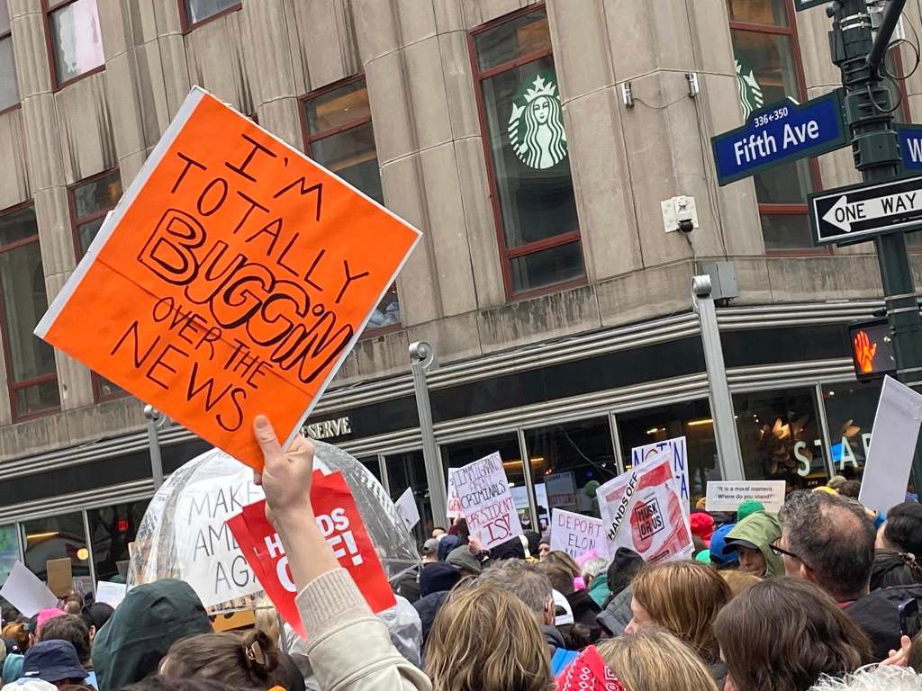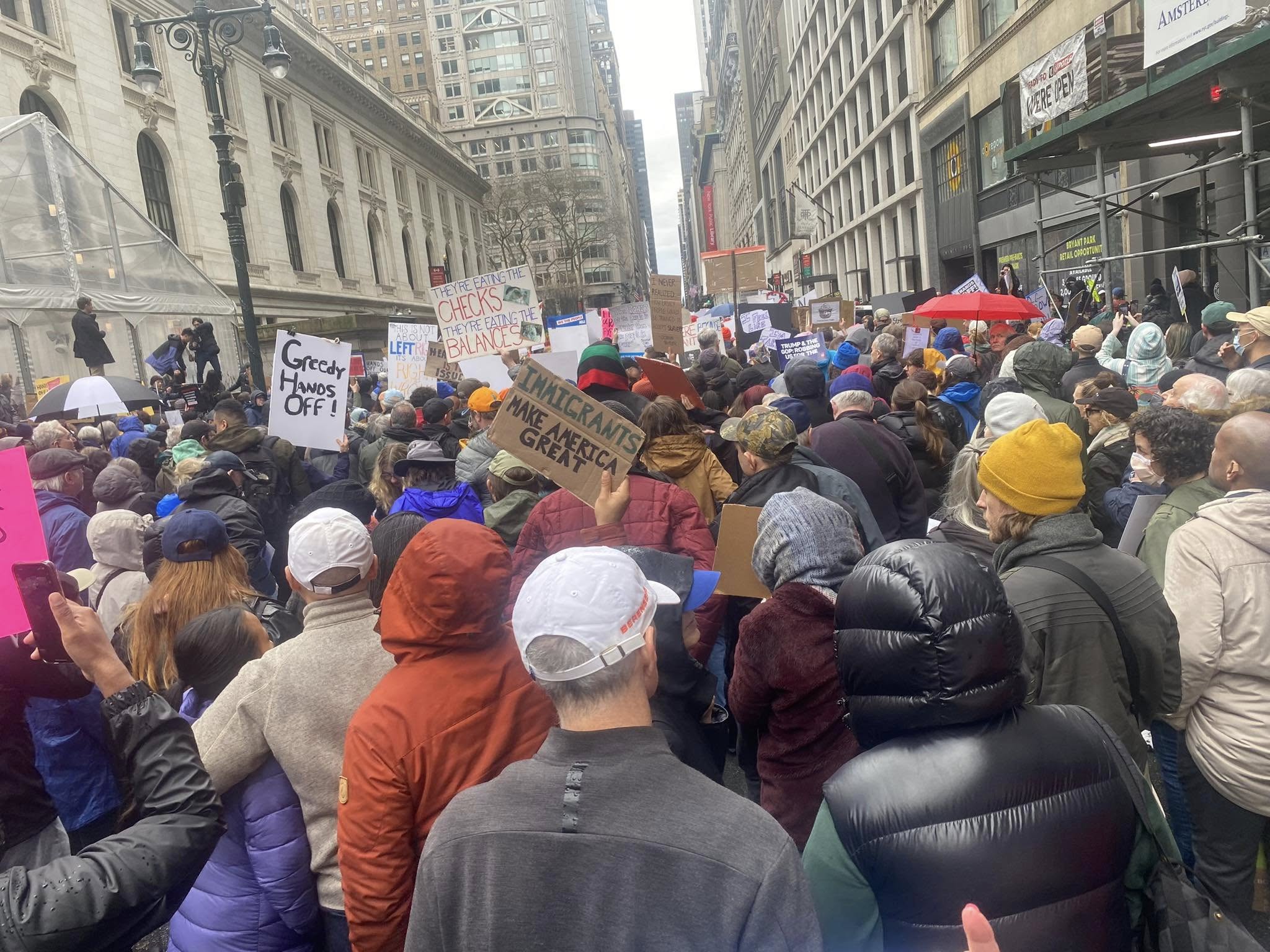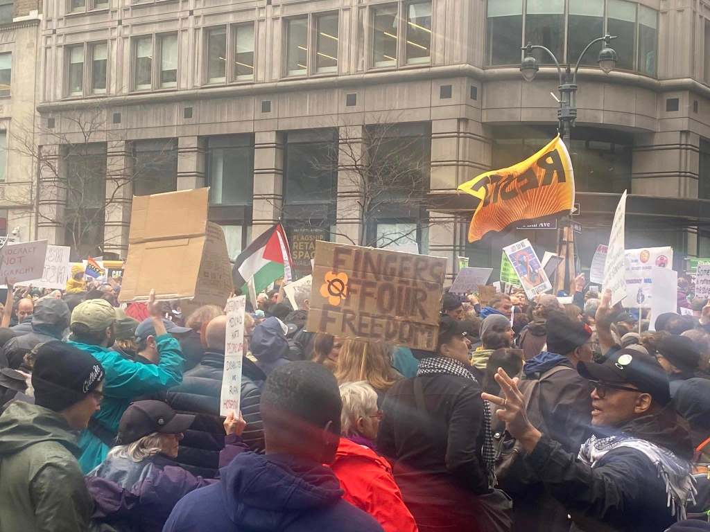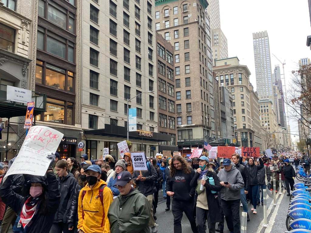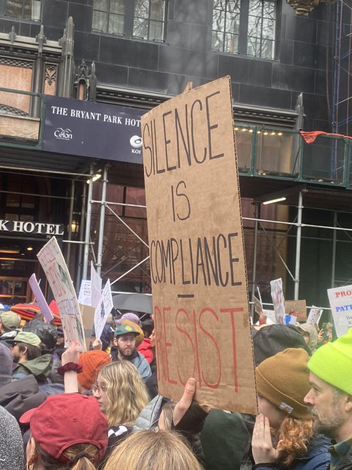 The NYC protest gathered at Bryant Park, then marched down 5th Avenue