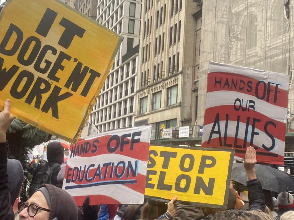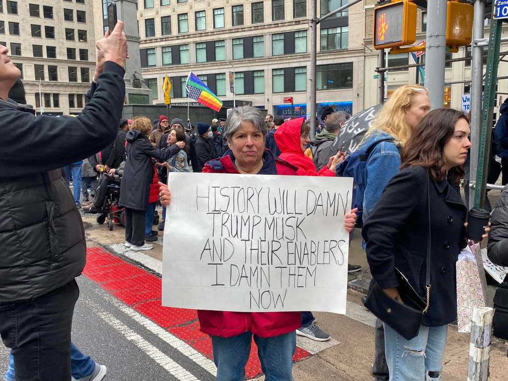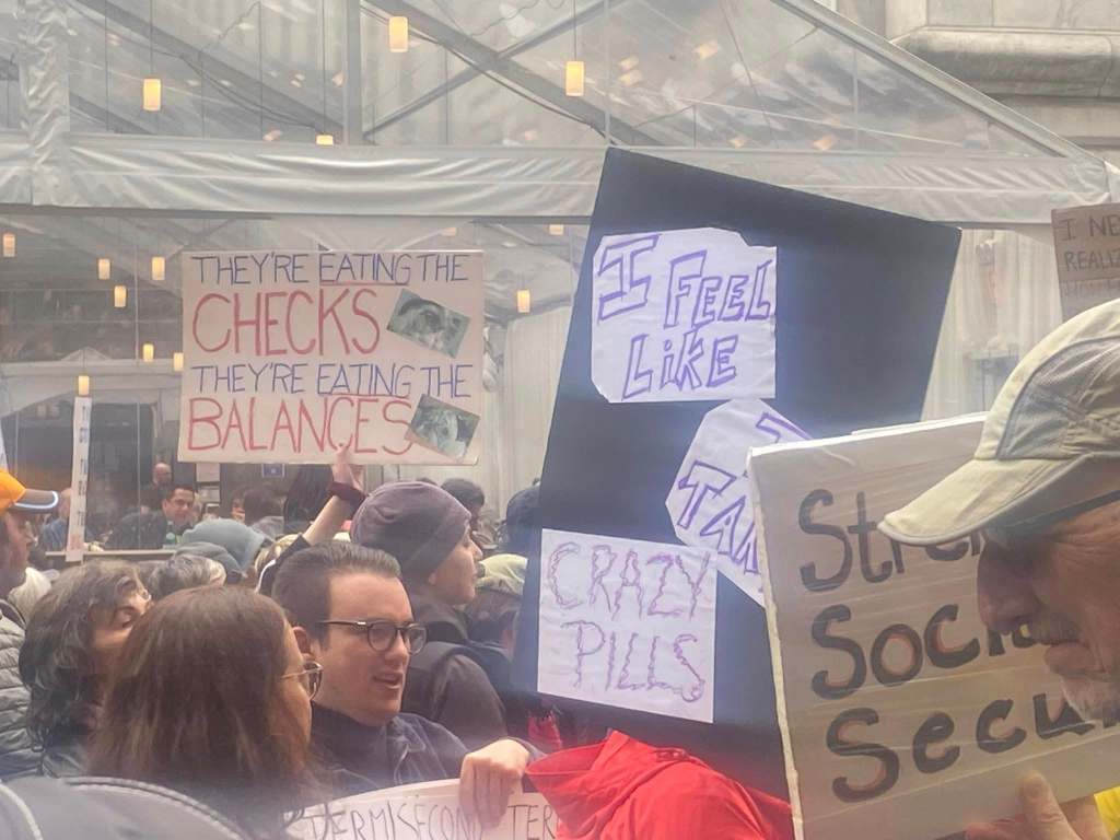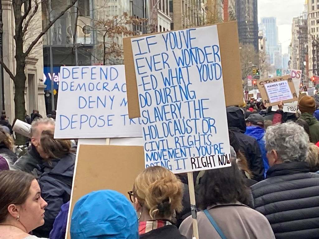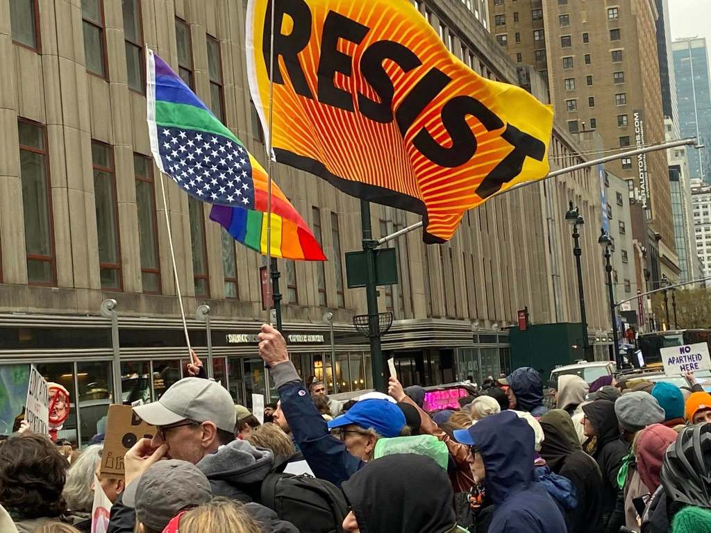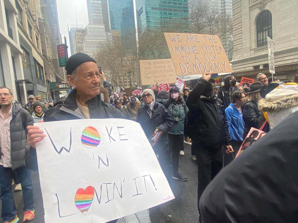 The NYC protest gathered at Bryant Park, then marched down 5th Avenue