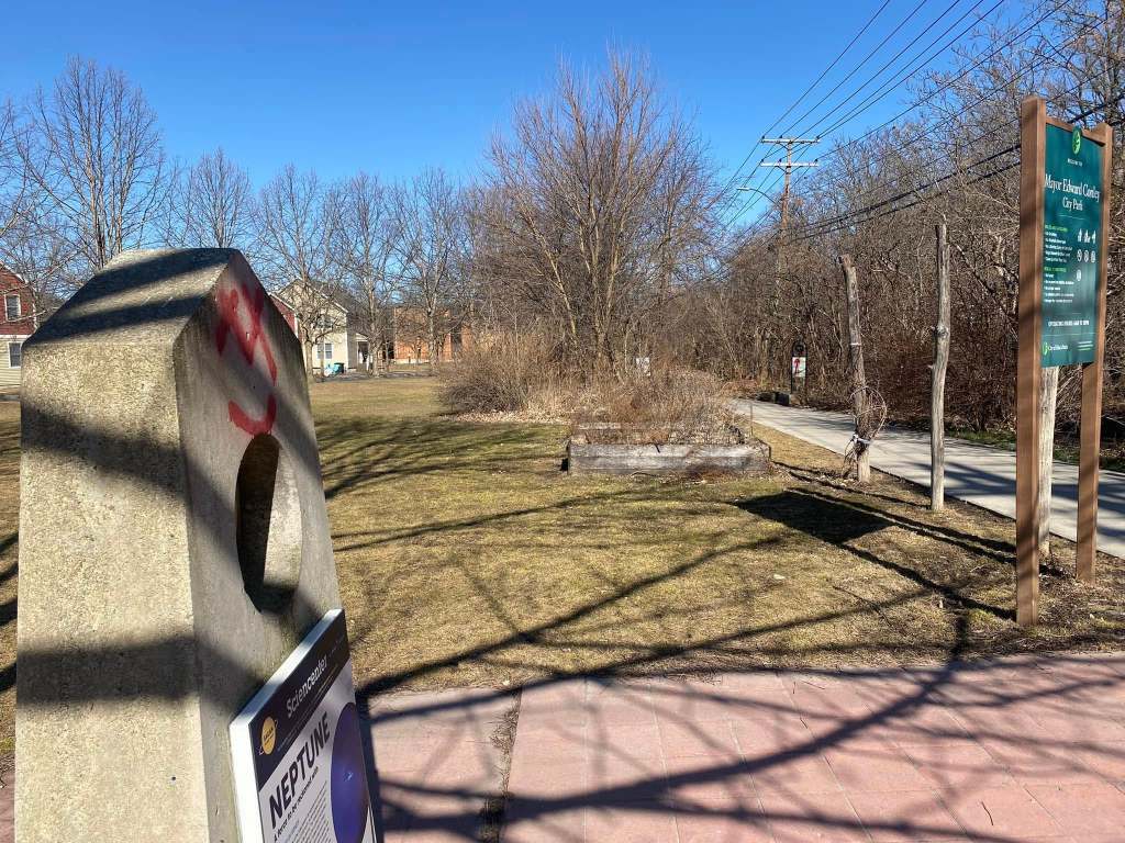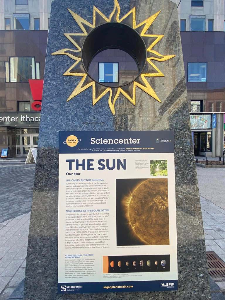 The punched out hole is the size of Earth compared to the yellow disc of the sun.