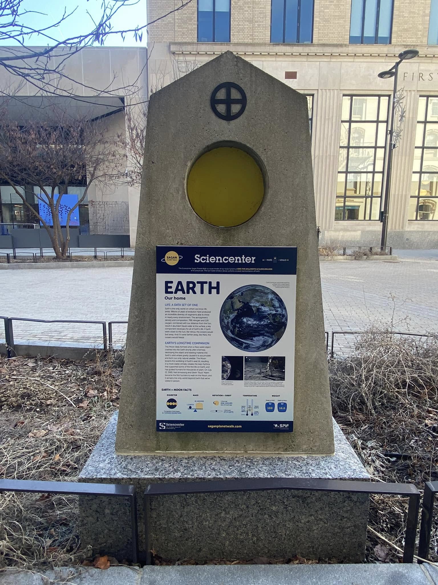 The punched out hole is the size of Earth compared to the yellow disc of the sun.