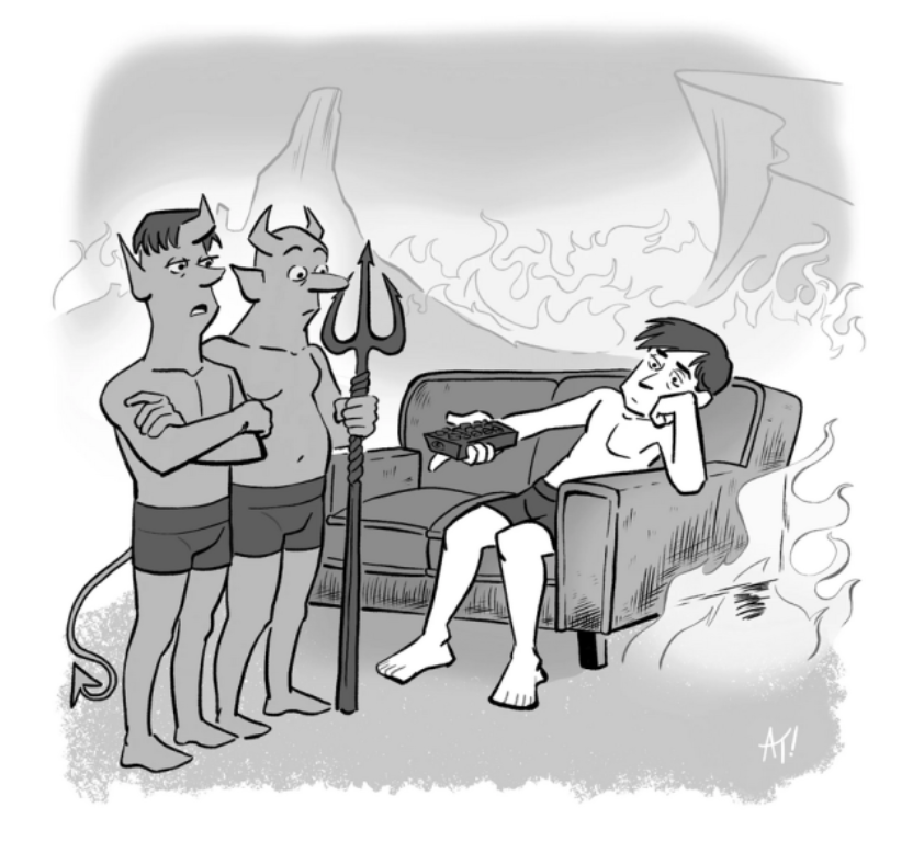 We’ve tried Barney and Friends, Housewives Reunions, Fox News, nothing works: he can’t tell he’s already here.