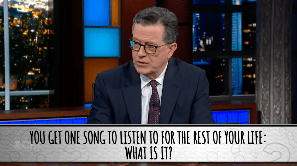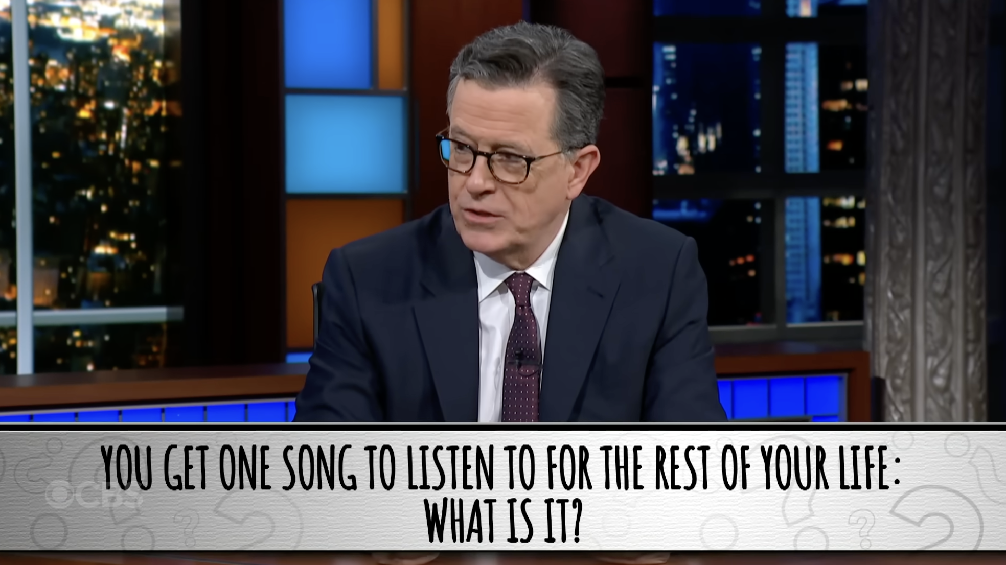 As Colbert explains every time he asks this, you don’t have to listen to it on endless repeat. It’s just the only song you get to listen to when you choose to listen to a song.