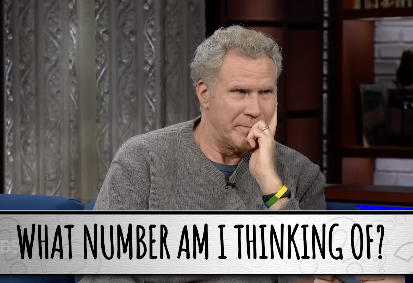 So far no one has ever guessed what number Colbert is thinking of, and maybe he always just randomly thinks of some impossible to guess complex number, then swiftly says no to the guest’s guess and moves on, and that’s the gag.