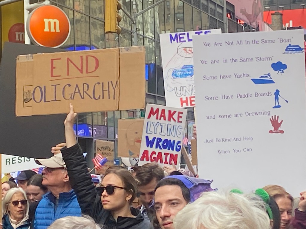 I joined some friends (and 300 000 more) in New York City yesterday (plus 7 million more nationwide) to march for Democracy, Truth, Decency, among other things, and against Fascism, Lies, Bigotry, among other things…
