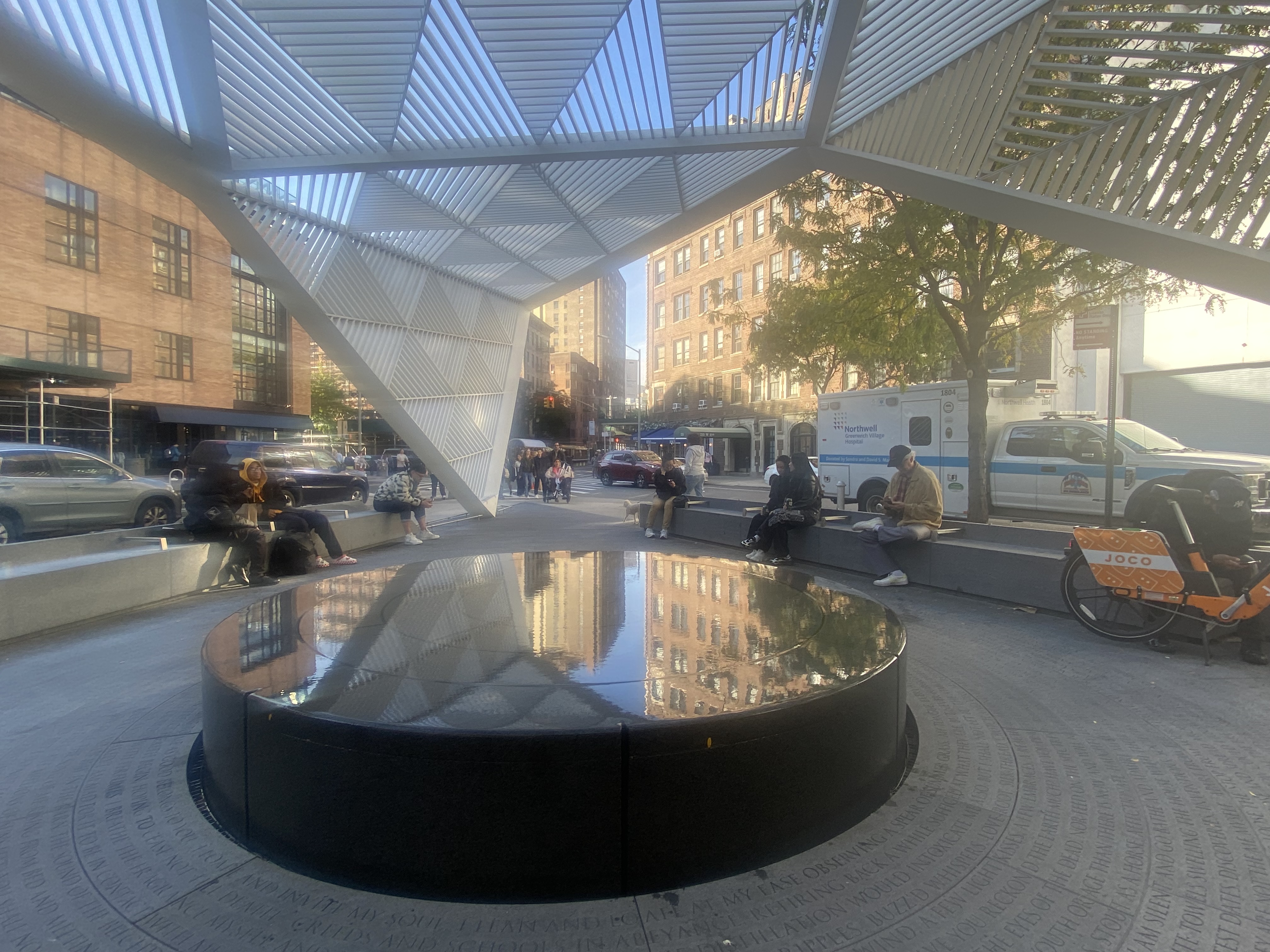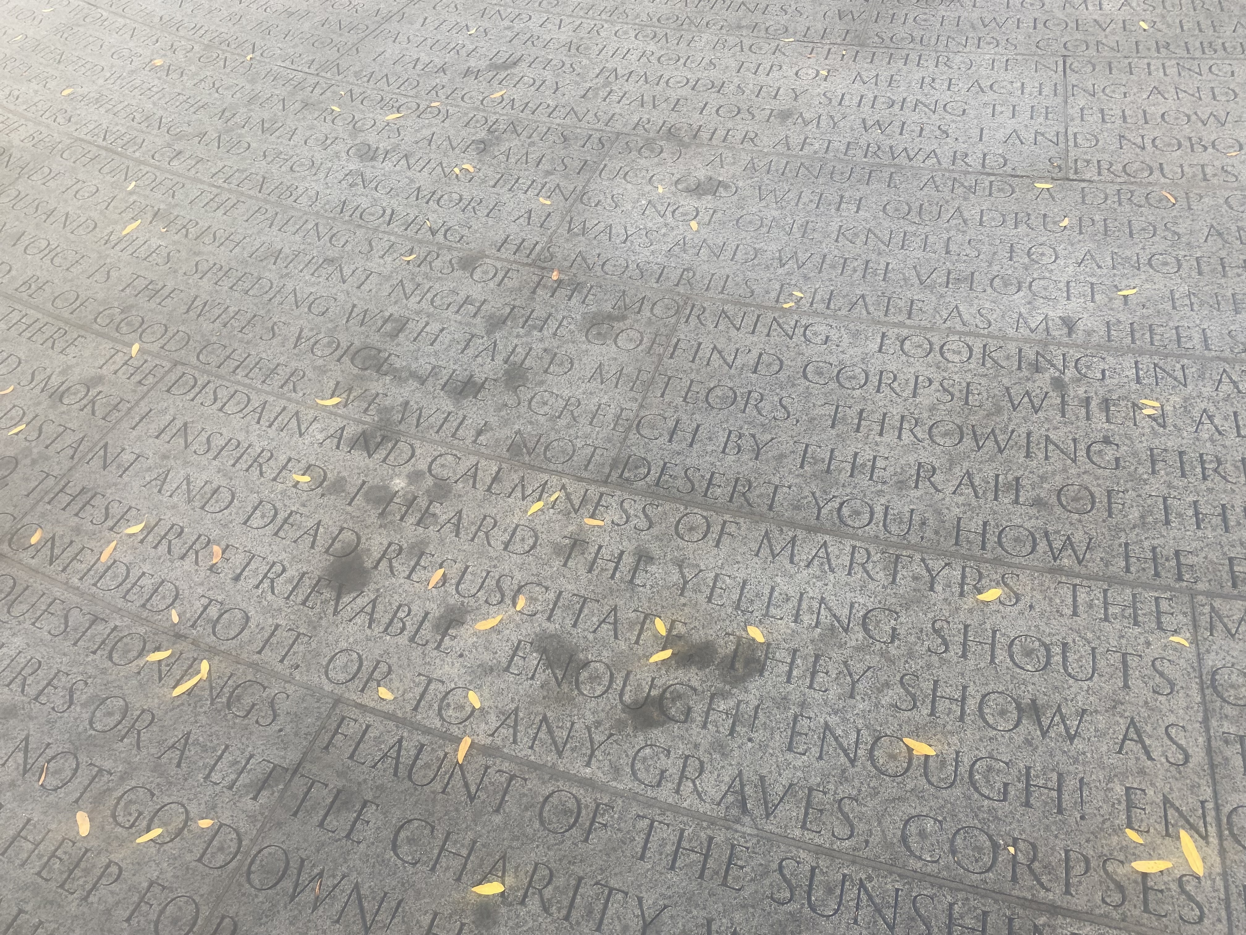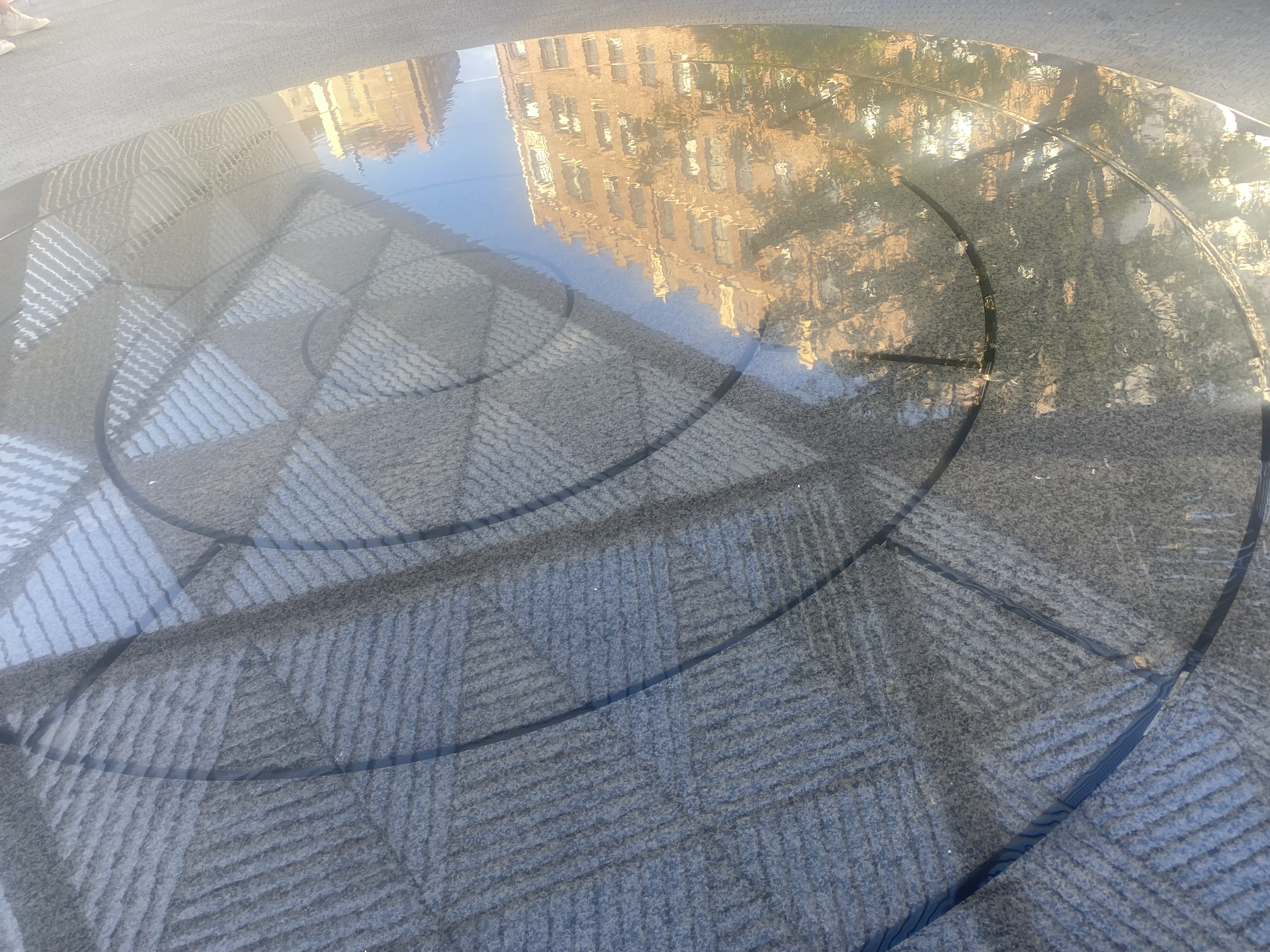 I’ve posted pics of the Aids Memorial before, but the photos I took this time are contrasting enough to warrant a second look. I was especially taken with how more dramatically reflective the thin film of water on the central black granite disc was in the October light.