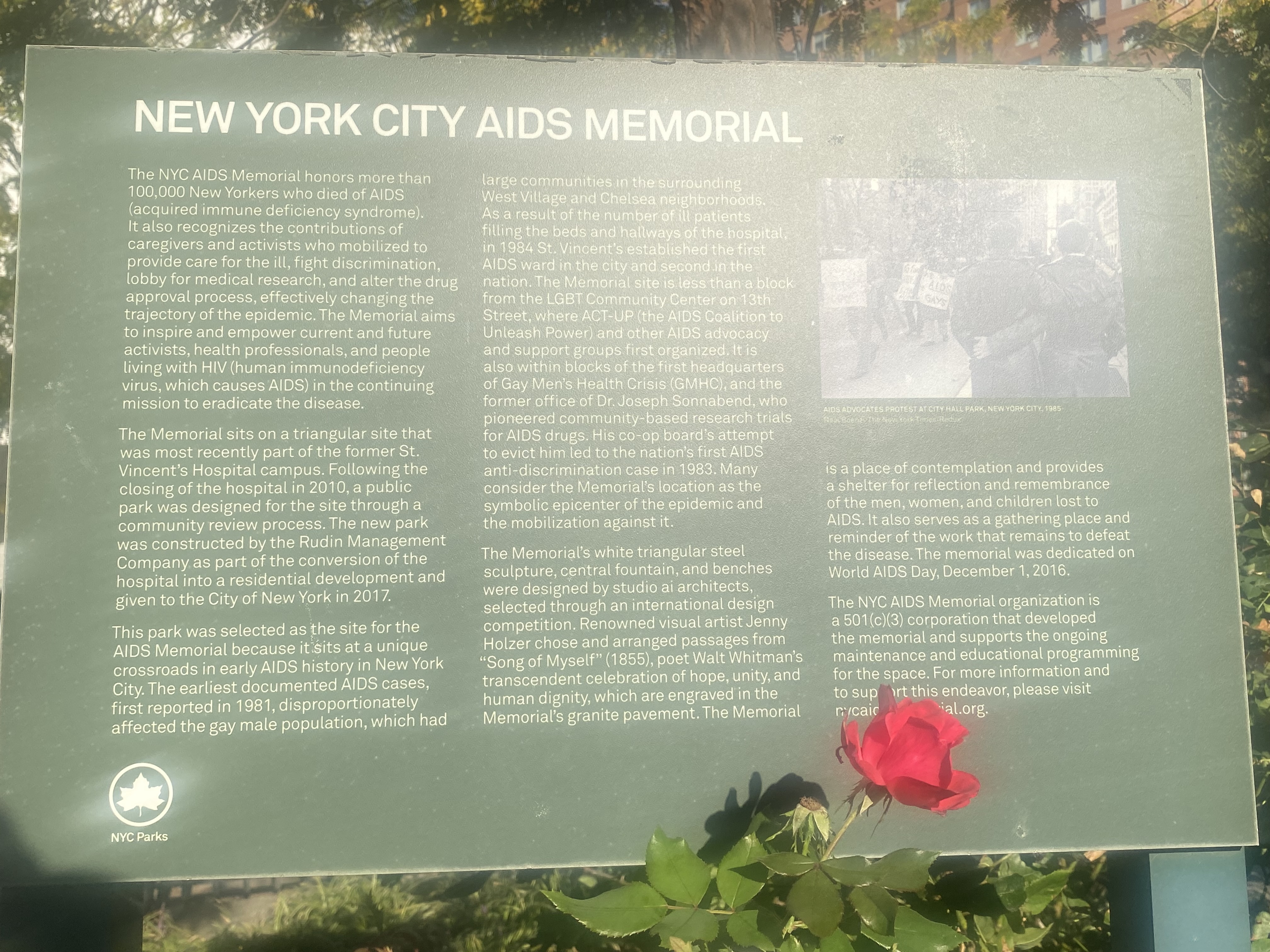 After completing the No Kings march last Saturday, Ed and I took a break at the Aids Memorial in the Village before going for dinner and taking in a double feature at Newfest (we saw the queer animal documentary “Second Nature” and the Zombie campfest “Queens of the Dead”, both of which I heartily recommend).