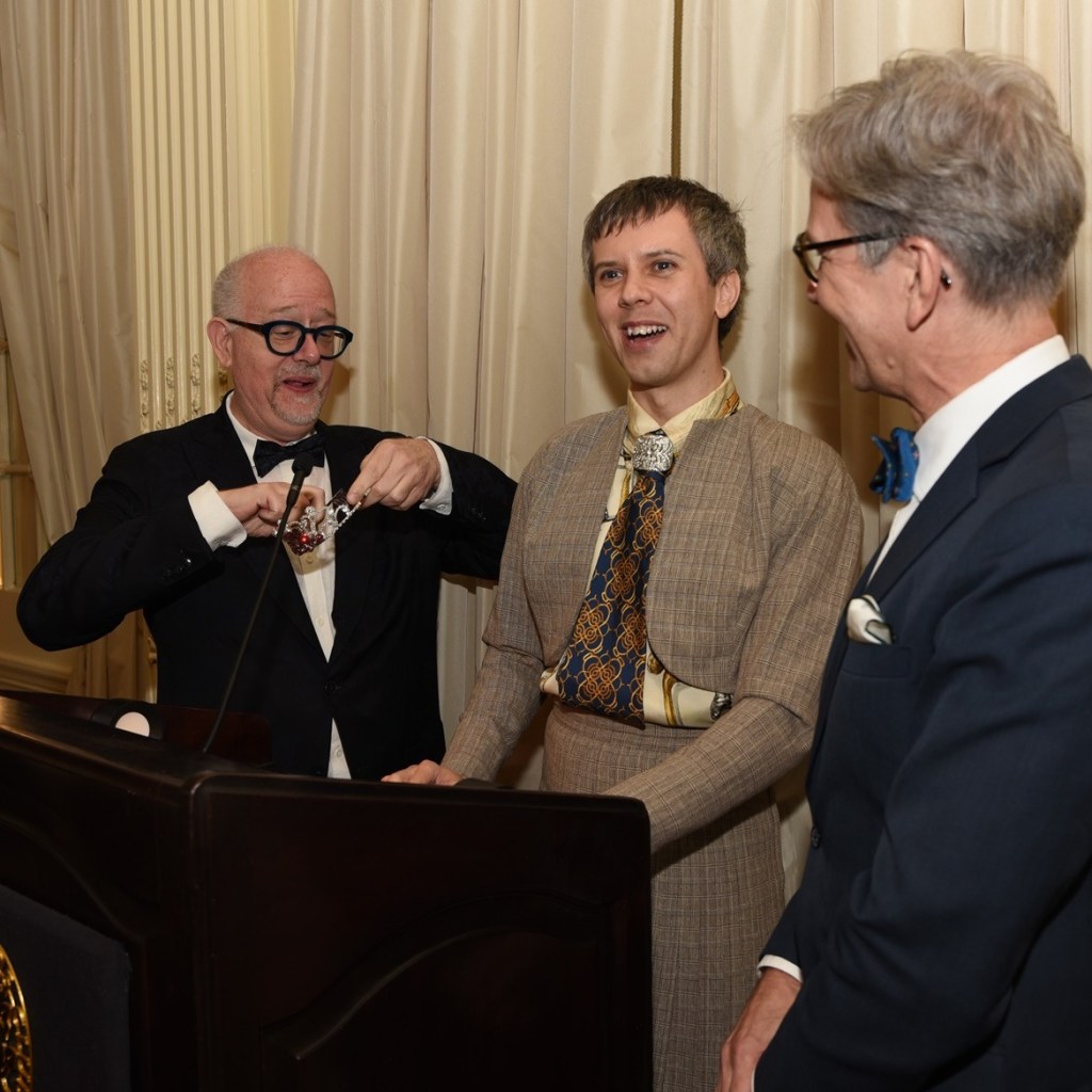 Pictured above, Doug Wright hands Cole Escola a tiara to go with their award after the actor John Early’s introduction. All three gave very witty, endearing speeches.