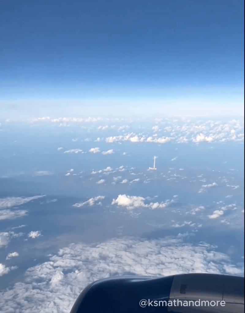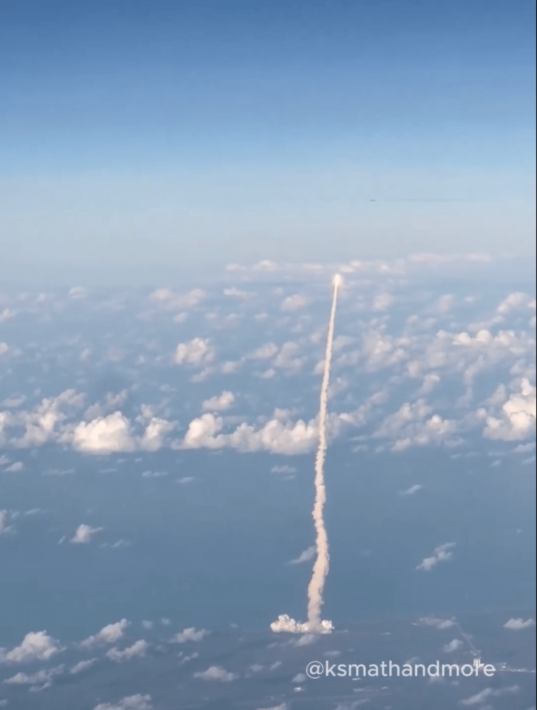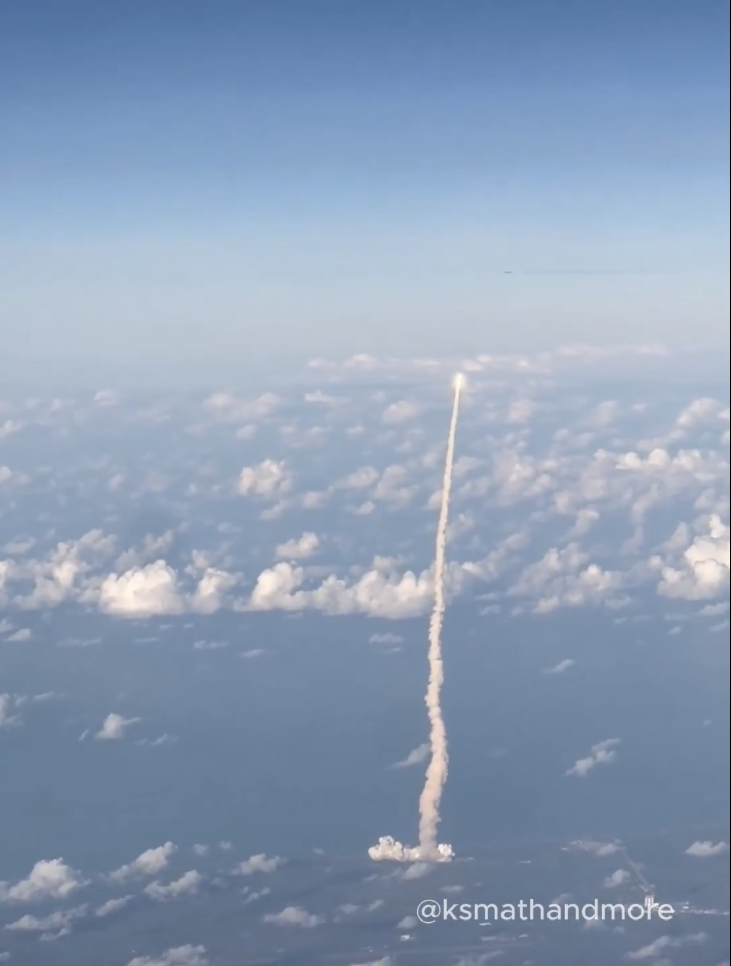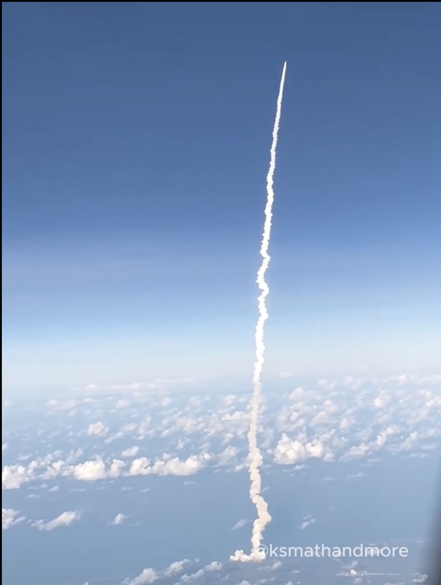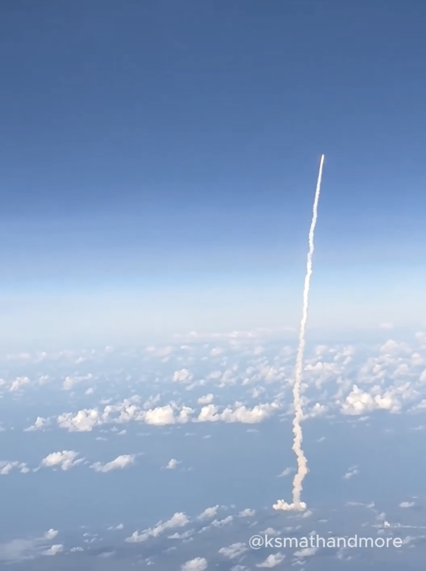 So I took some screenshots which I will share. But if you have access to the site formally known as Twitter, do watch this video. It’s the longest, most comprehensive one I’ve seen of the launch viewed from a plan. Plus the commentary from an elated flight attendant as well as a jaded passenger (who will watch it later on video), not to mention a crying baby, are an amusing accompaniment to the awe inspiring sight.