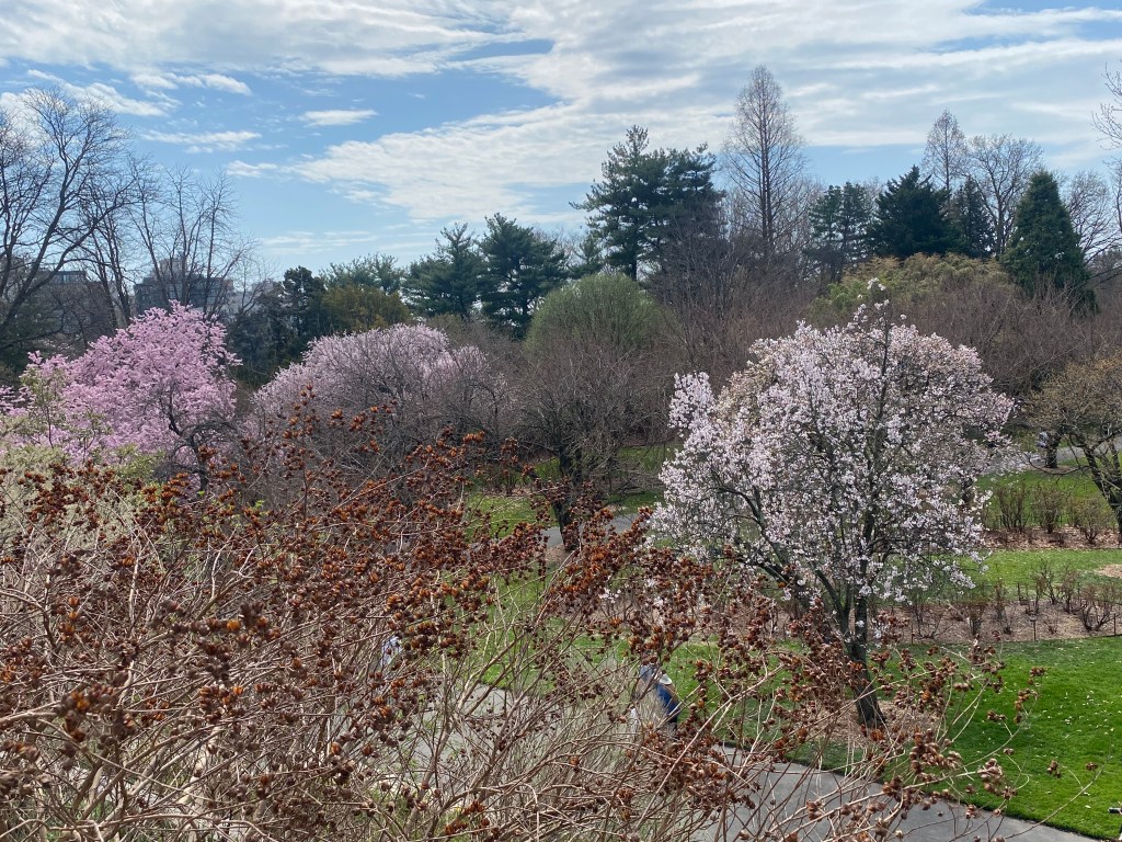 But the main cherry trees which make up the famous esplanade still have a few weeks to go before they bloom, always a big deal in the BBG.