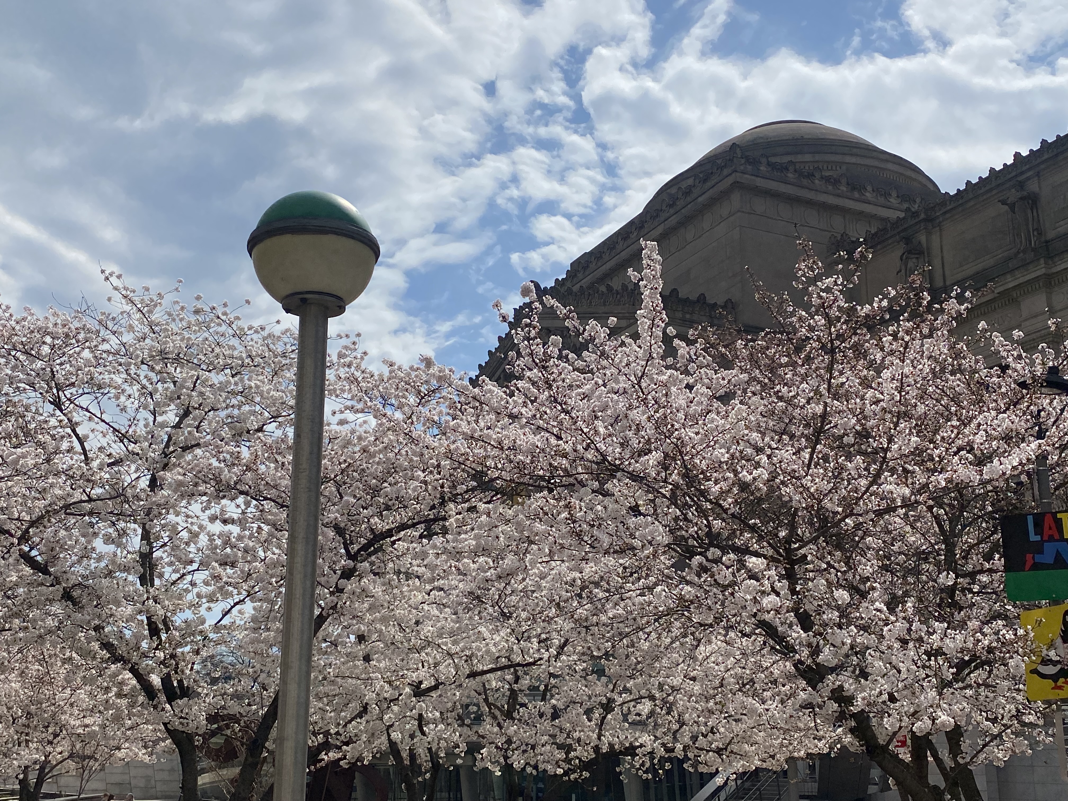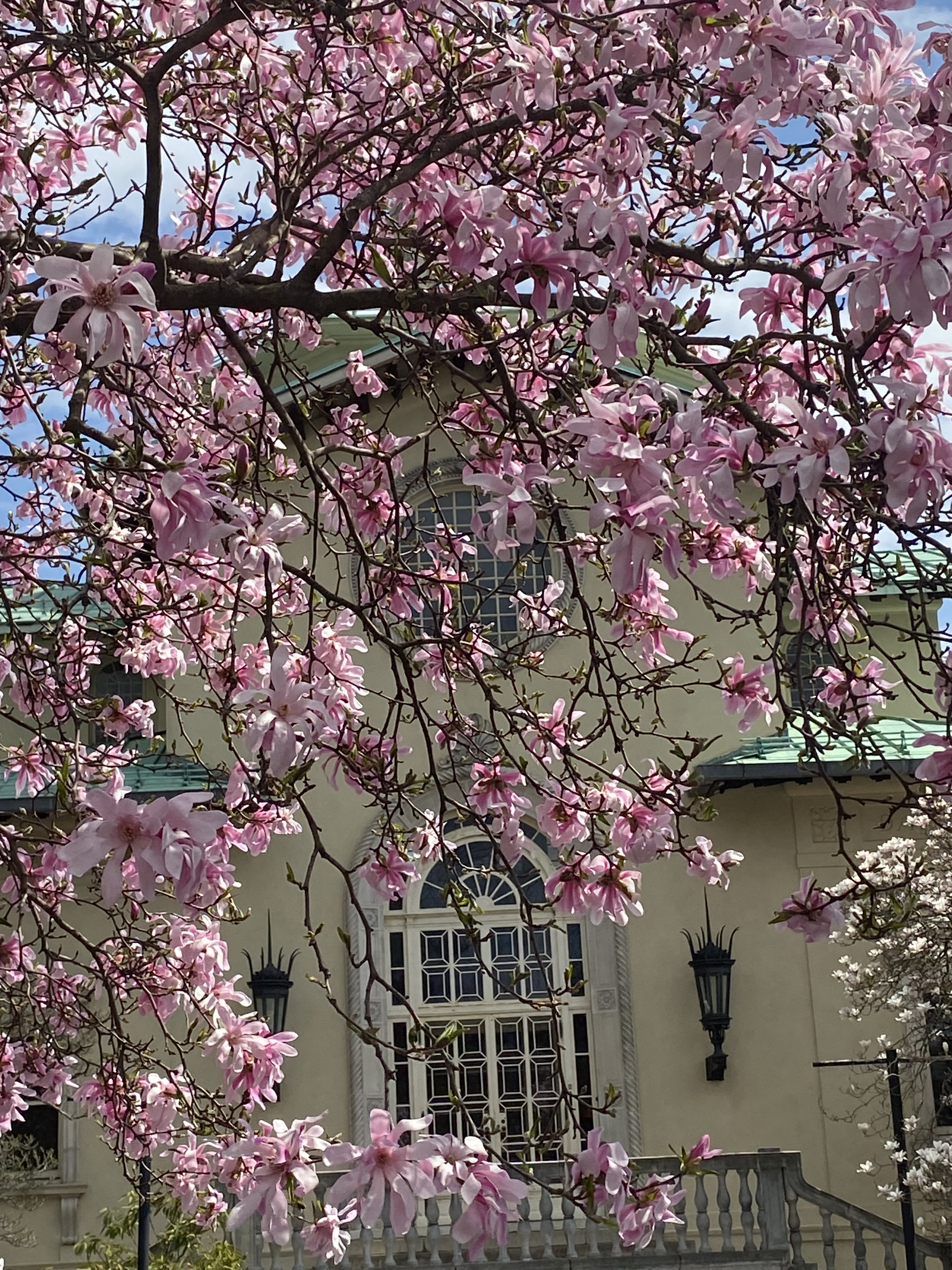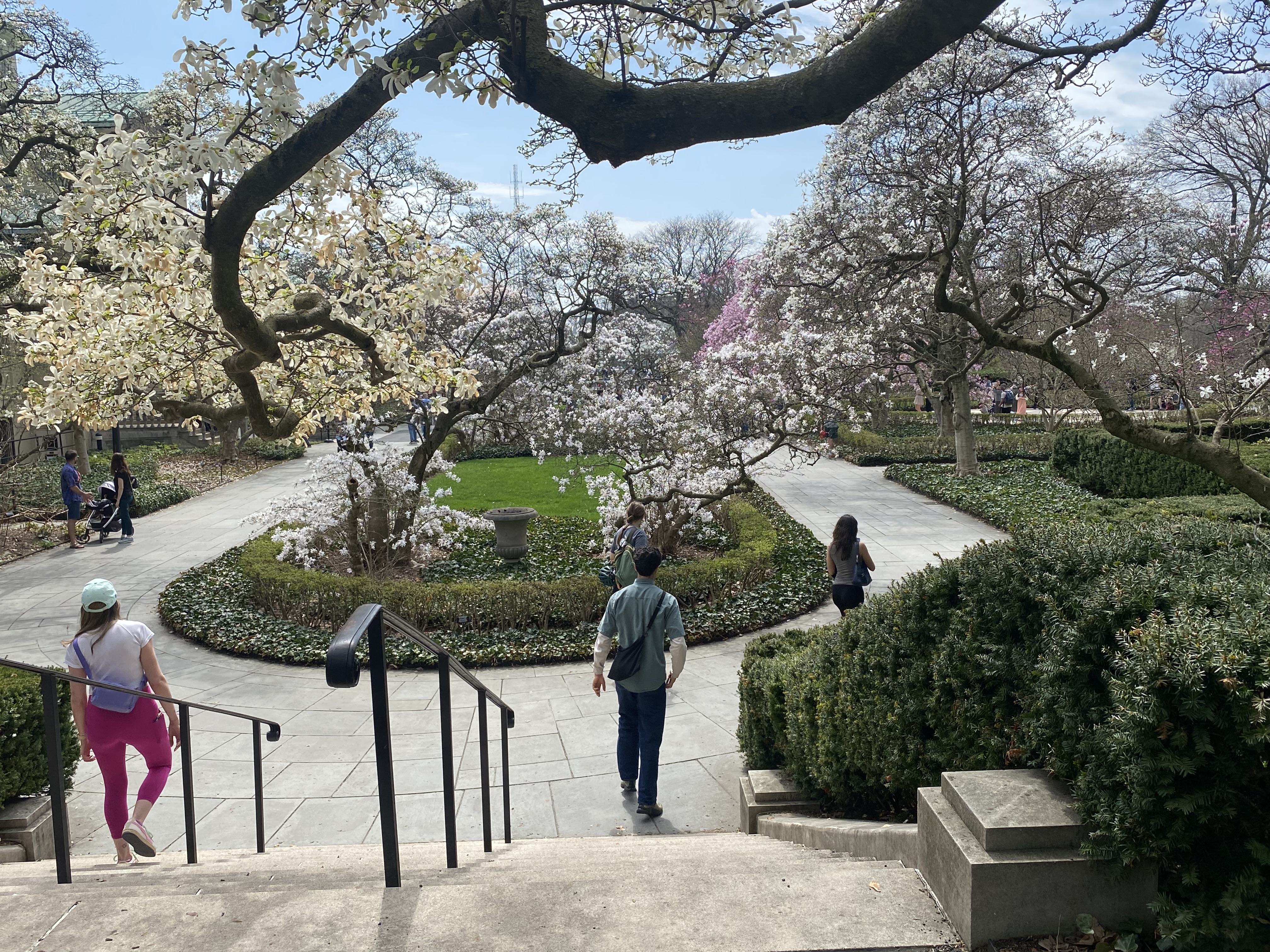 The entrance into the BBG is right next to the Brooklyn Museum where the white blossoms of the Yoshino Cherry trees are already in bloom.