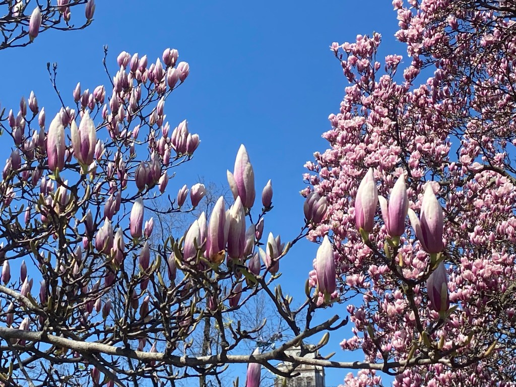 And we’re back with the early blossoming cherry trees.
