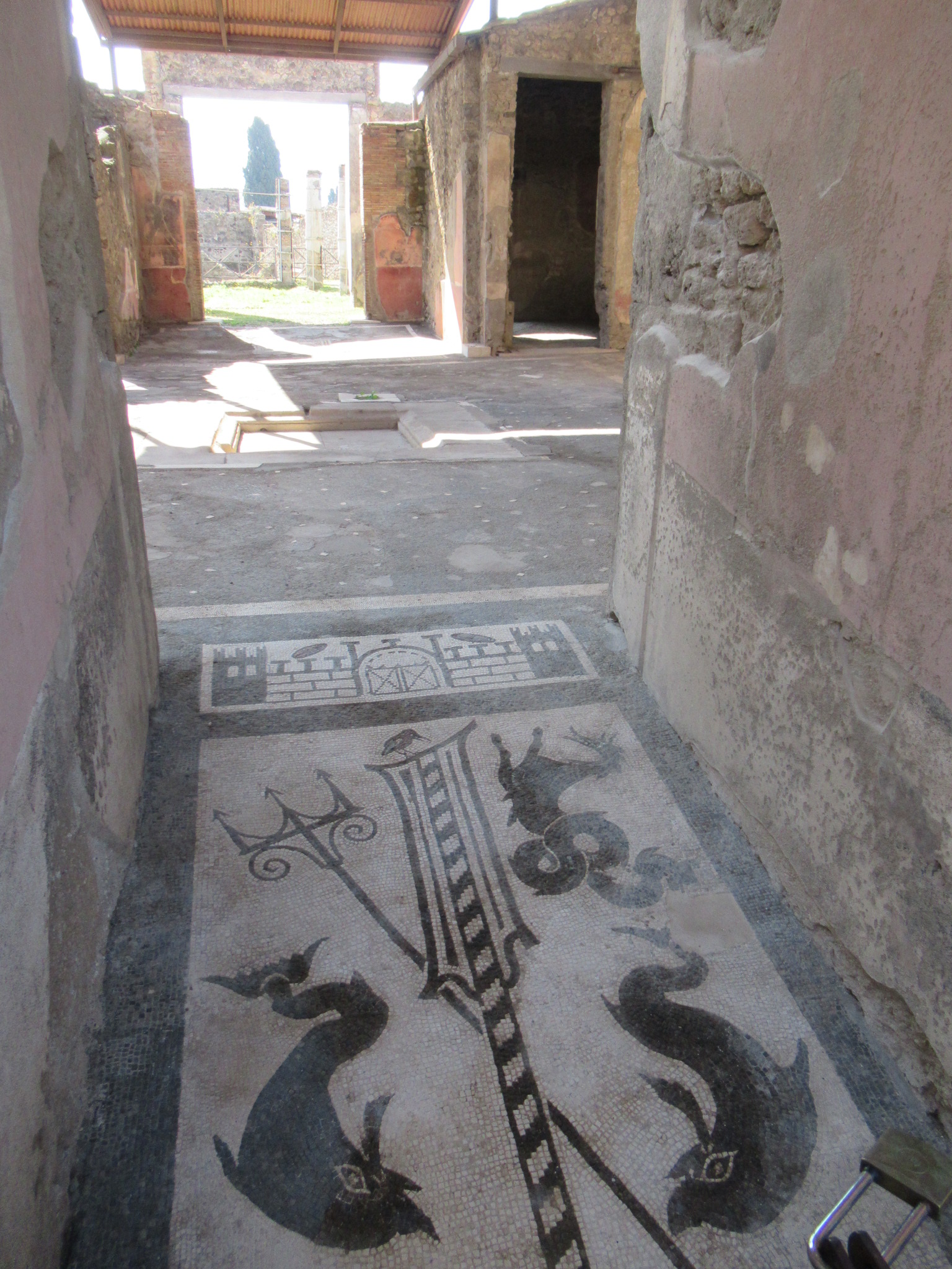 The entrance mosaic into the home of someone whose wealth was likely made via the sea.