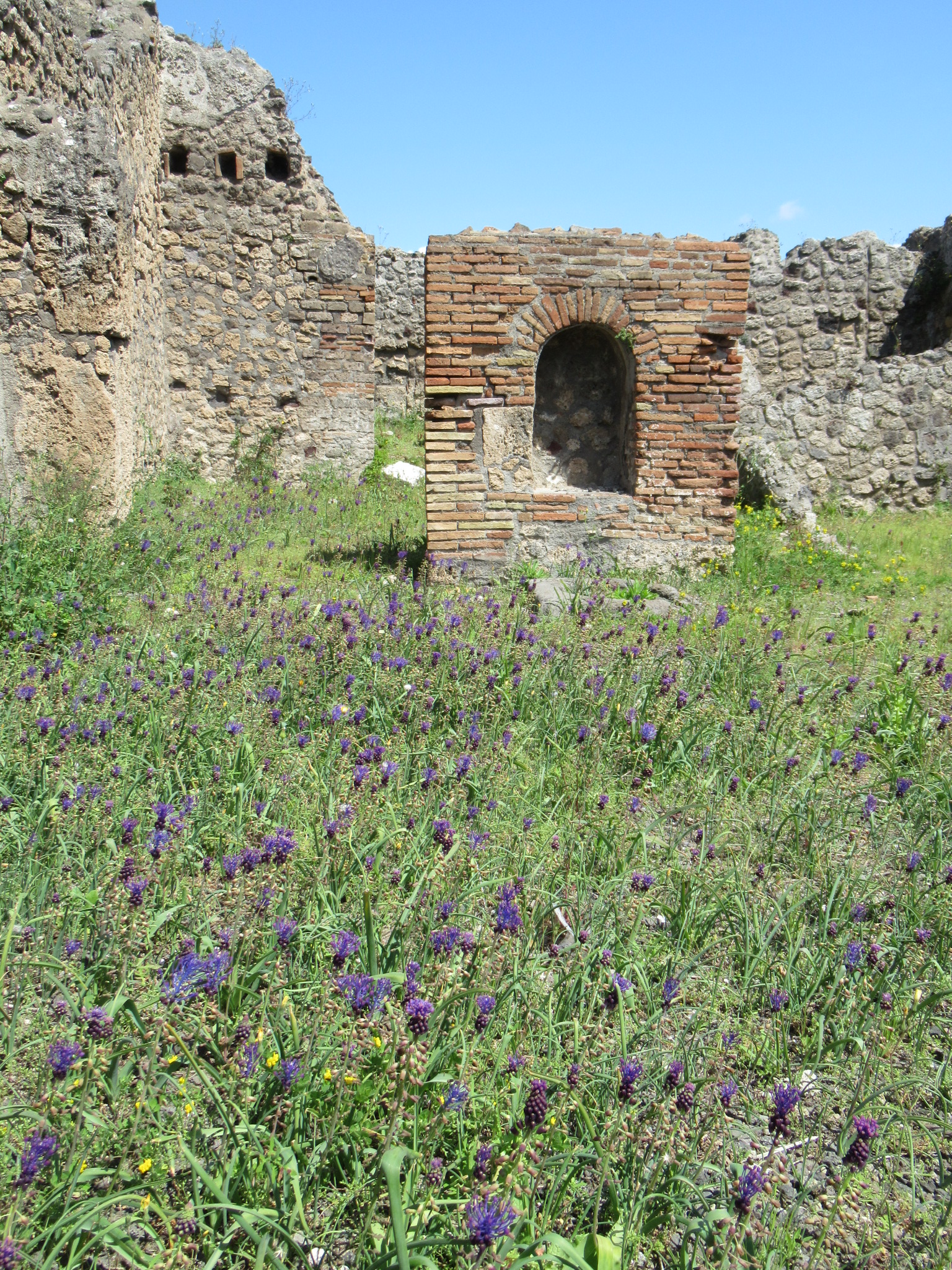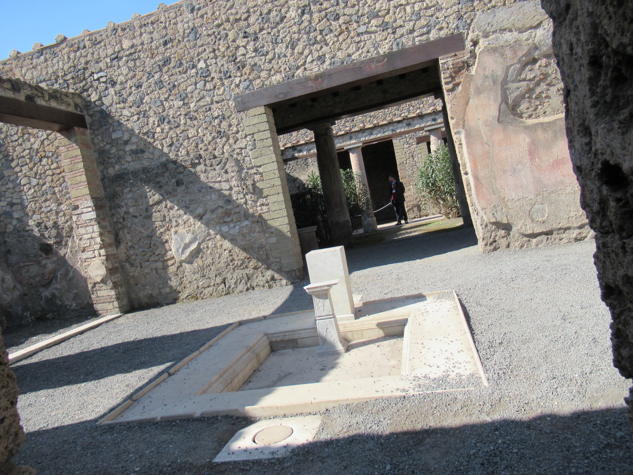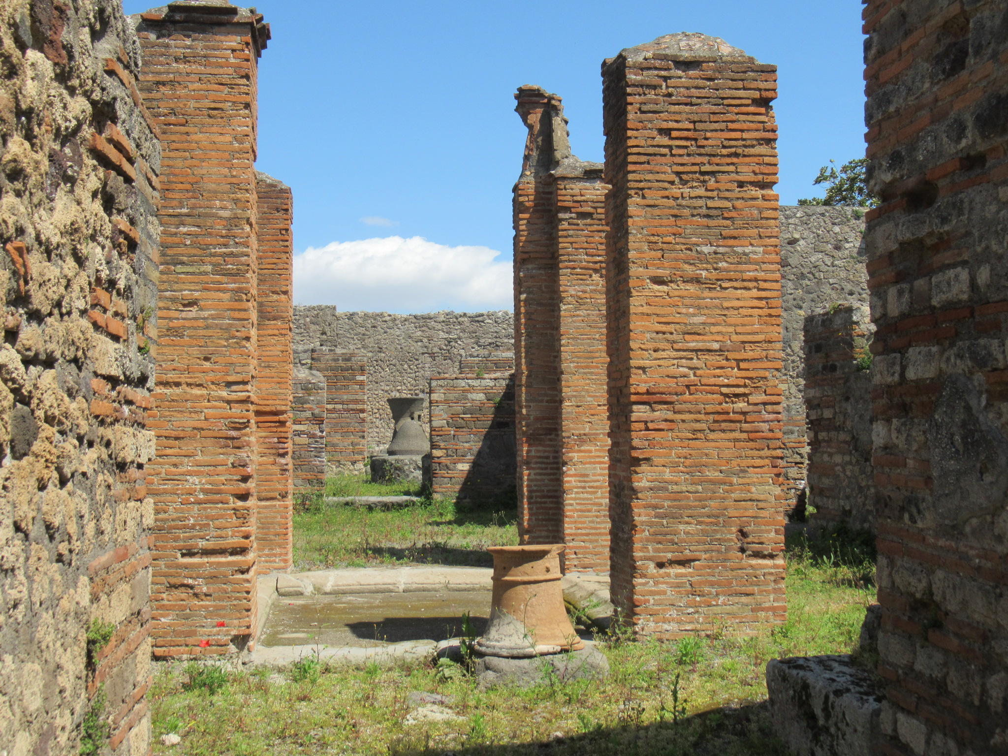 These pictures will start with the humbler ruins, starker examples of indoor spaces, then move up the socioeconomic ladder to the better preserved, more elegant homes and gardens of Pompeii’s upper class. We’ll then take a more detailed look at the many wall paintings that covered every inch of the homes of the wealthy.