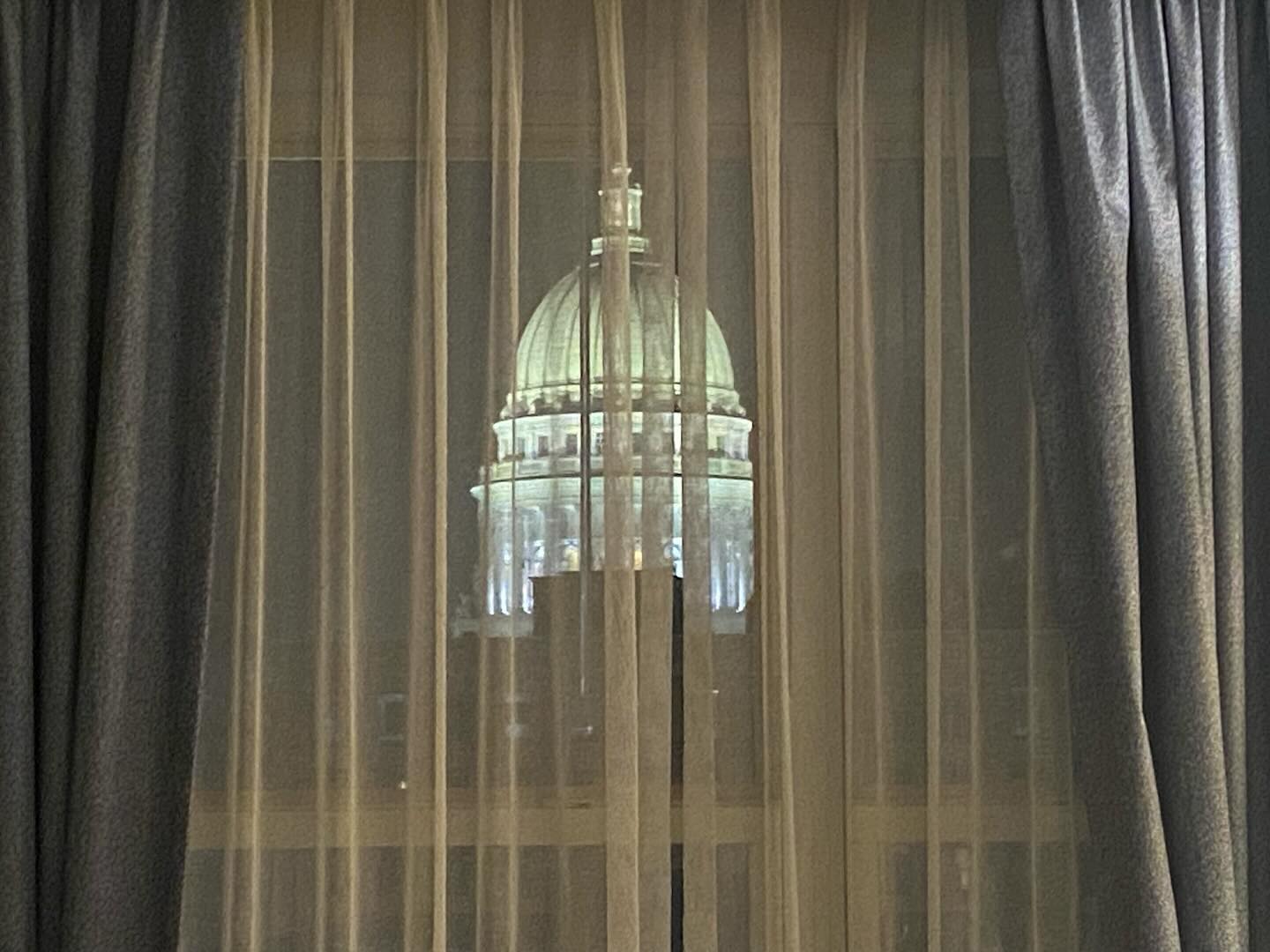 So, very much fly by the seat of your pants theater. The dance music and loud conversations that bled through the walls from nearby rooms in the building were an unexpected factor – but fortunately not audible to the on-line audience even if very much heard by us actors…