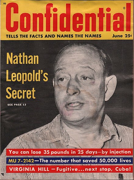 Nathan Leopold is half of the famous murderous duo “Leopold and Loeb”, one of several “Crimes of the Century” that thrilled the nation. This one occurred in 1924 – Leopold and Loeb were wealthy, high society friends – and lovers – who killed 14 year old Bobby Franks for kicks? to prove their intellectual superiority? a folie a deux? Read the Wikipedia entry for an entry into the bizarre details.